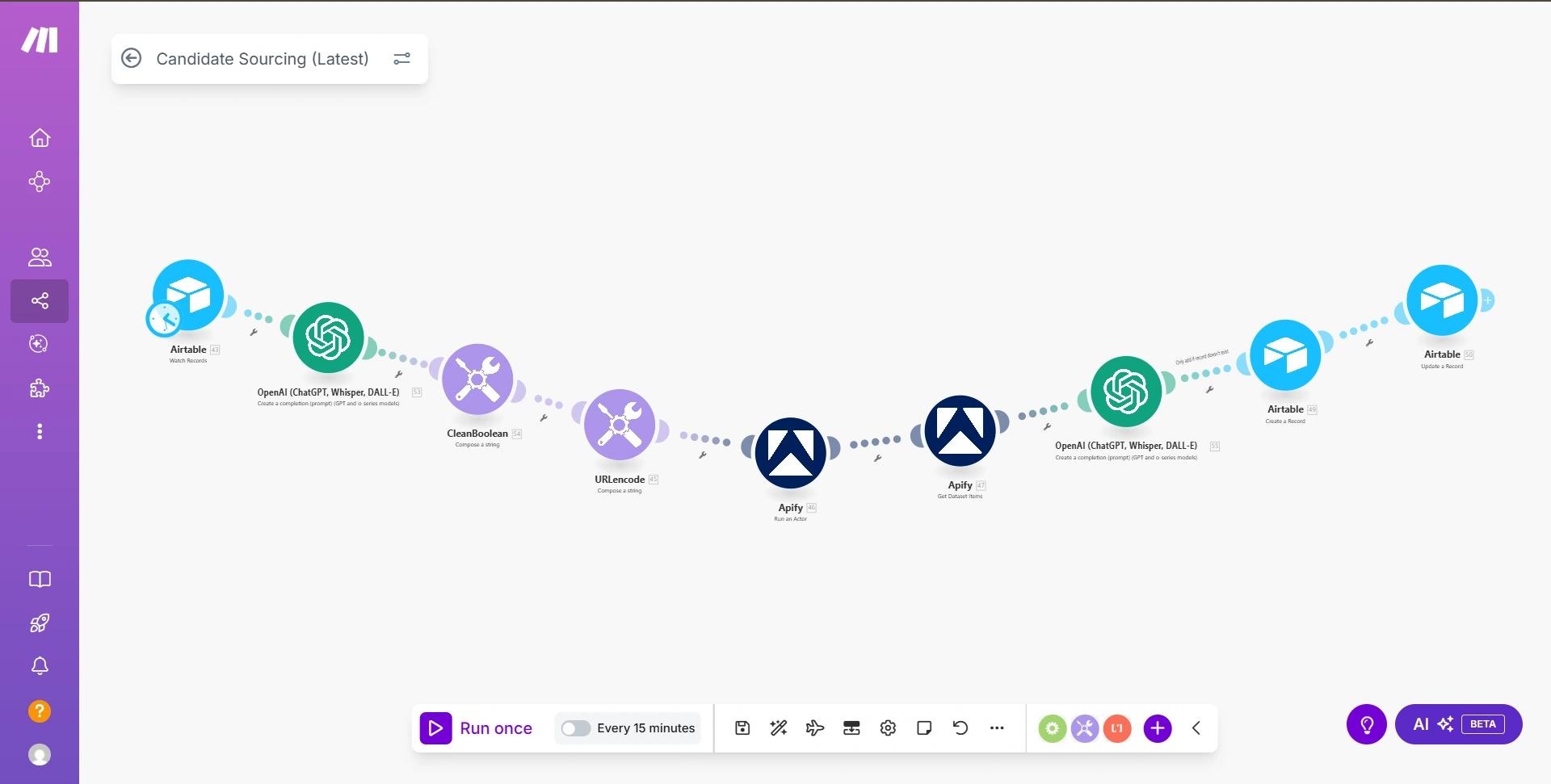 Built a Make.com workflow to scrape, enrich & classify startup data, cutting manual research by 80% and boosting recruiter efficiency.