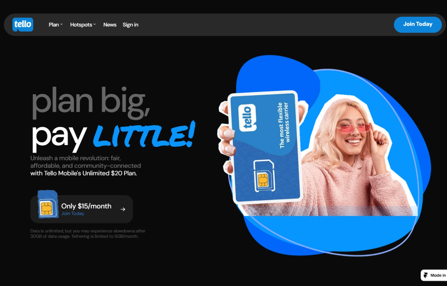 Scope: Designing and developing a fully responsive Framer website with smooth animations, intuitive navigation, and dynamic content to showcase Tello’s plans, features, and customer testimonials.