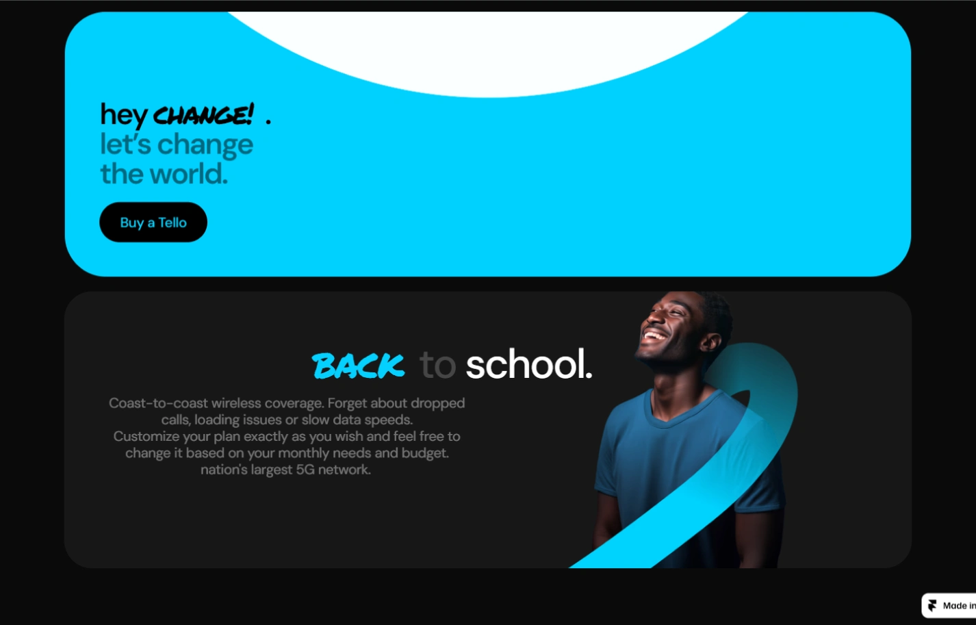 Objective: Bring Tello’s fresh and flexible mobile service brand to life online with a sleek, modern website that clearly highlights their 5G plans and customer-first approach. The goal was to build a digital experience that makes exploring and choosing a wireless plan effortless and engaging for users.
