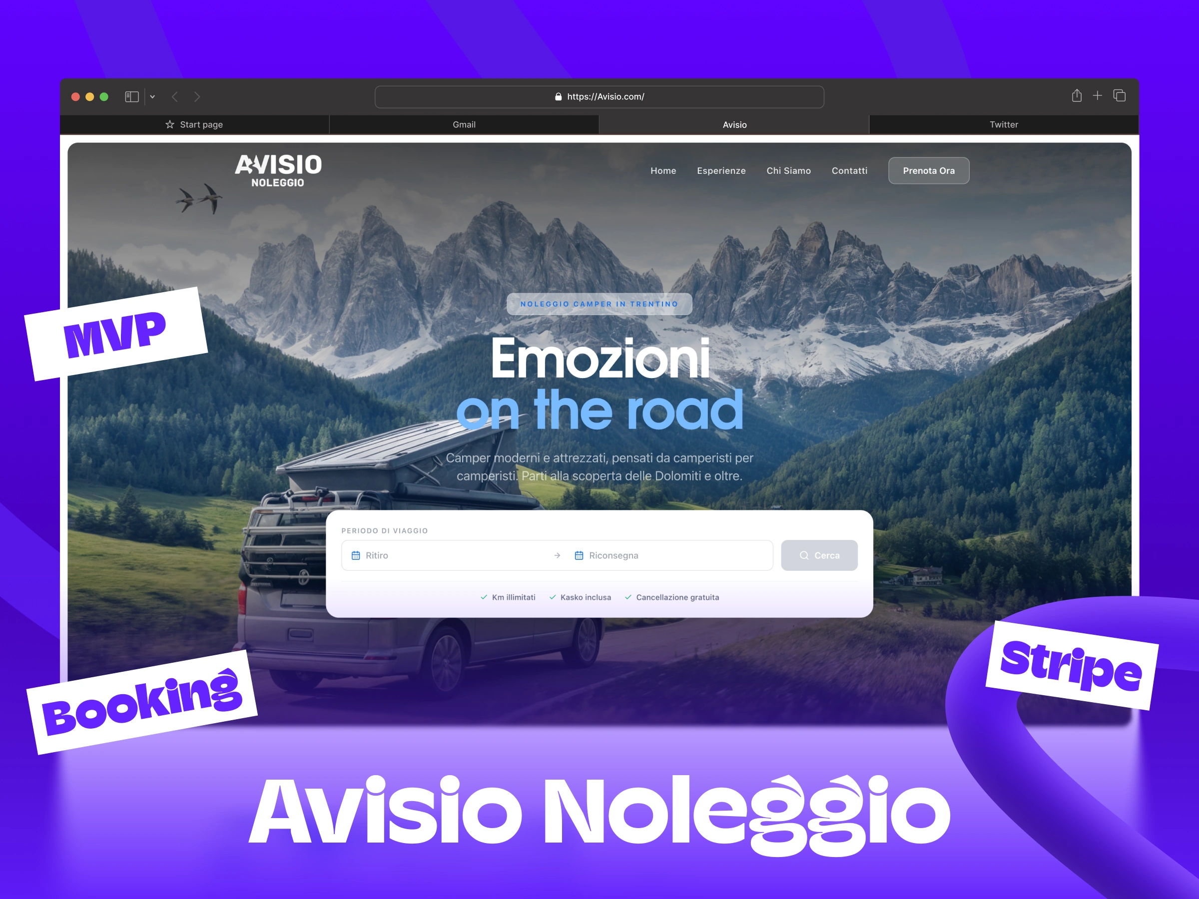 Avisio Noleggio is a Northern Italy–based camper rental company. I built them a full-stack solution with booking management, an admin panel, and Stripe payments