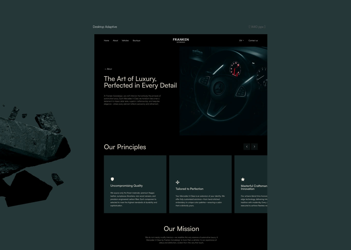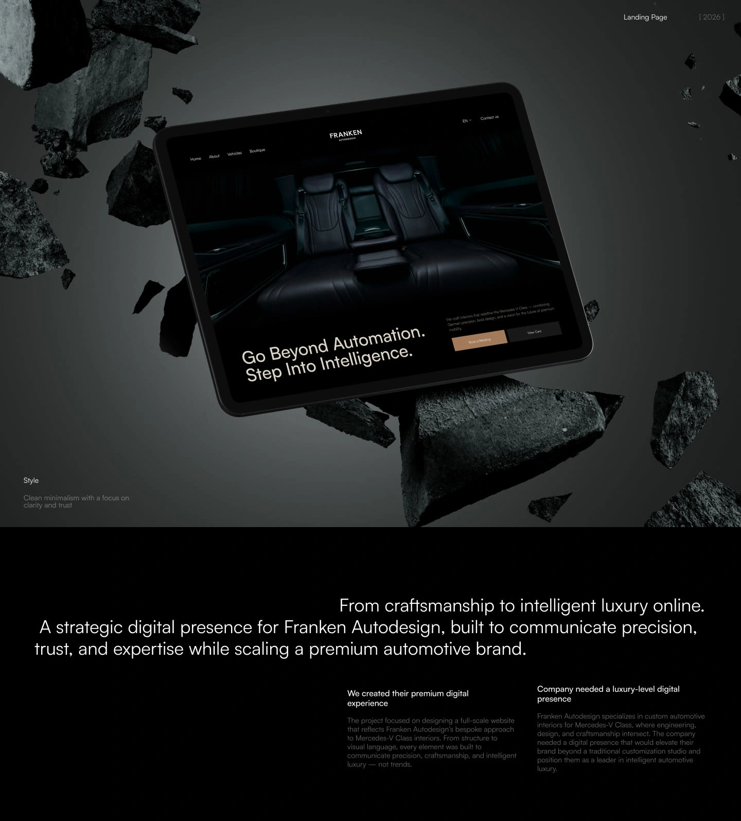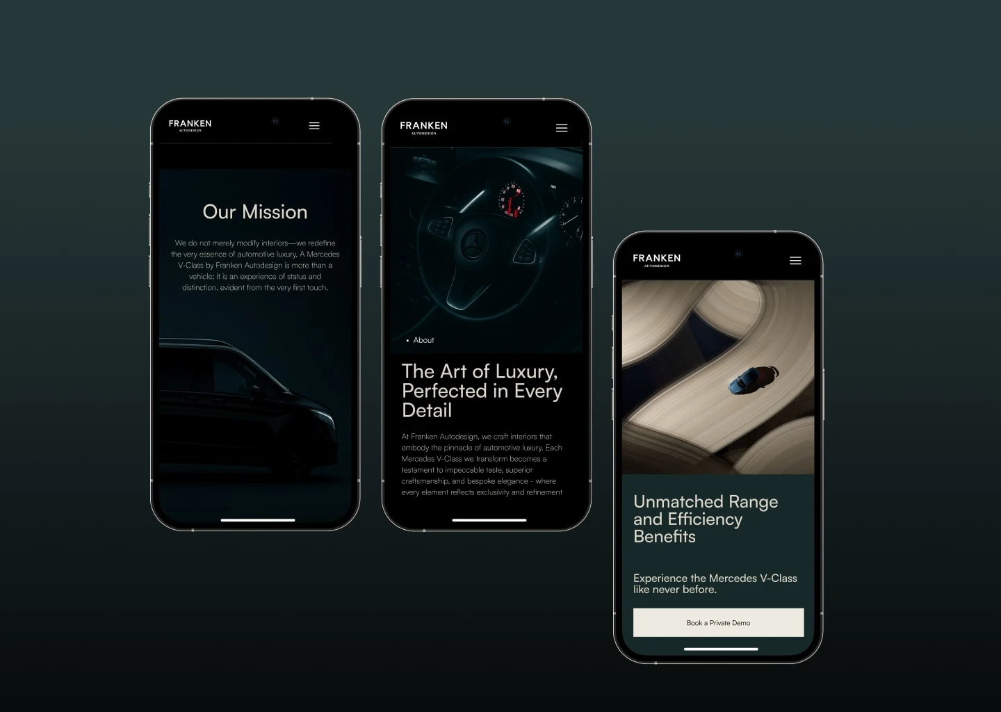 Premium automotive website design for Franken Autodesign — custom UI, bold layouts, and high-end digital experience for luxury car customization brand.