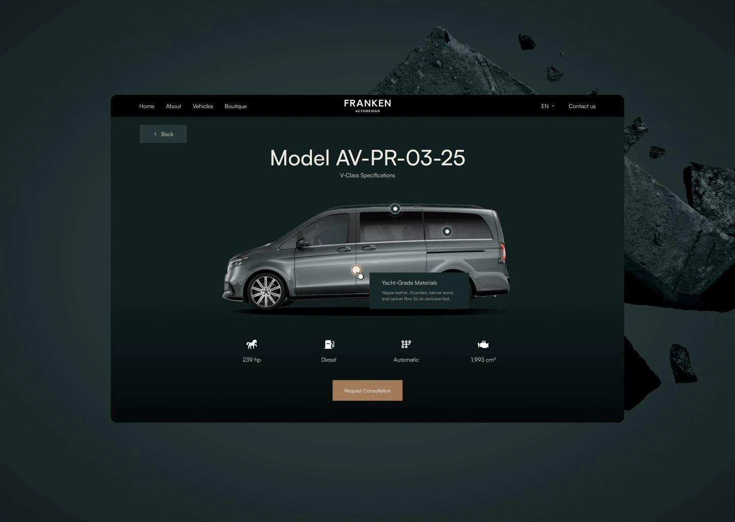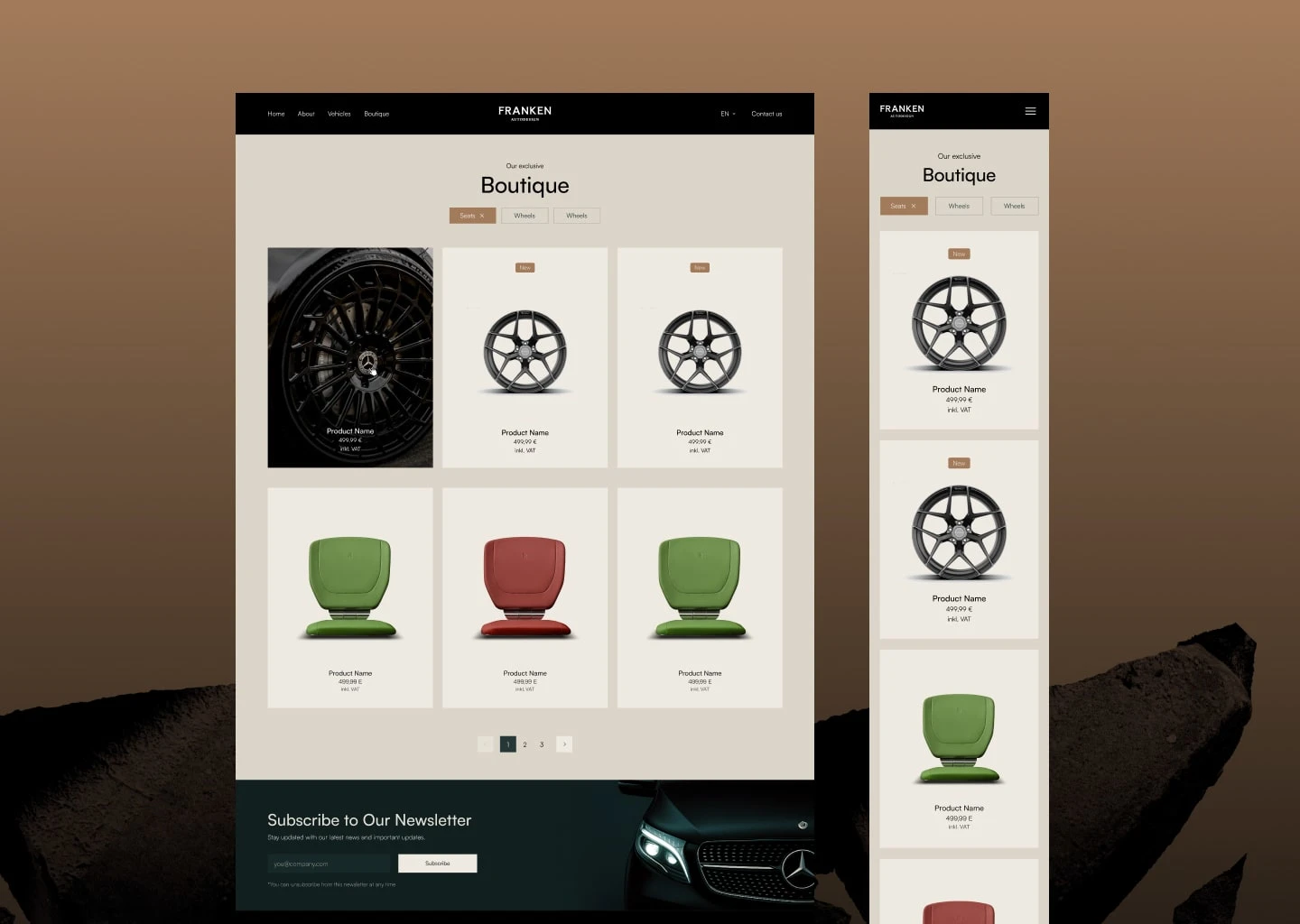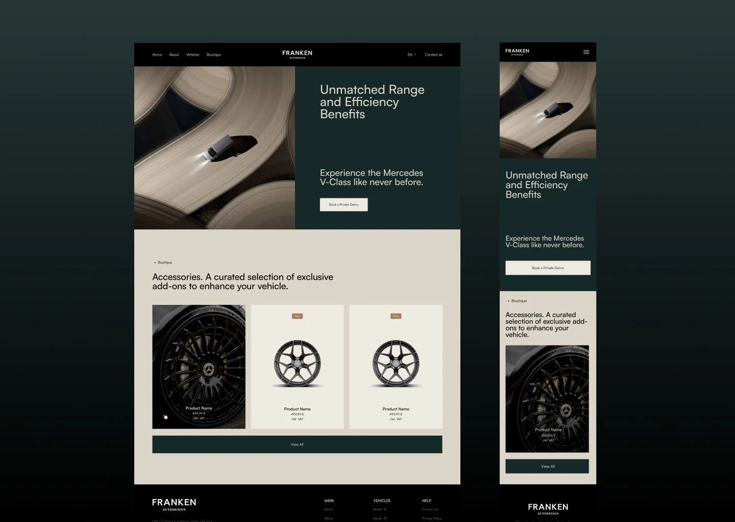 Premium automotive website design for Franken Autodesign — custom UI, bold layouts, and high-end digital experience for luxury car customization brand.