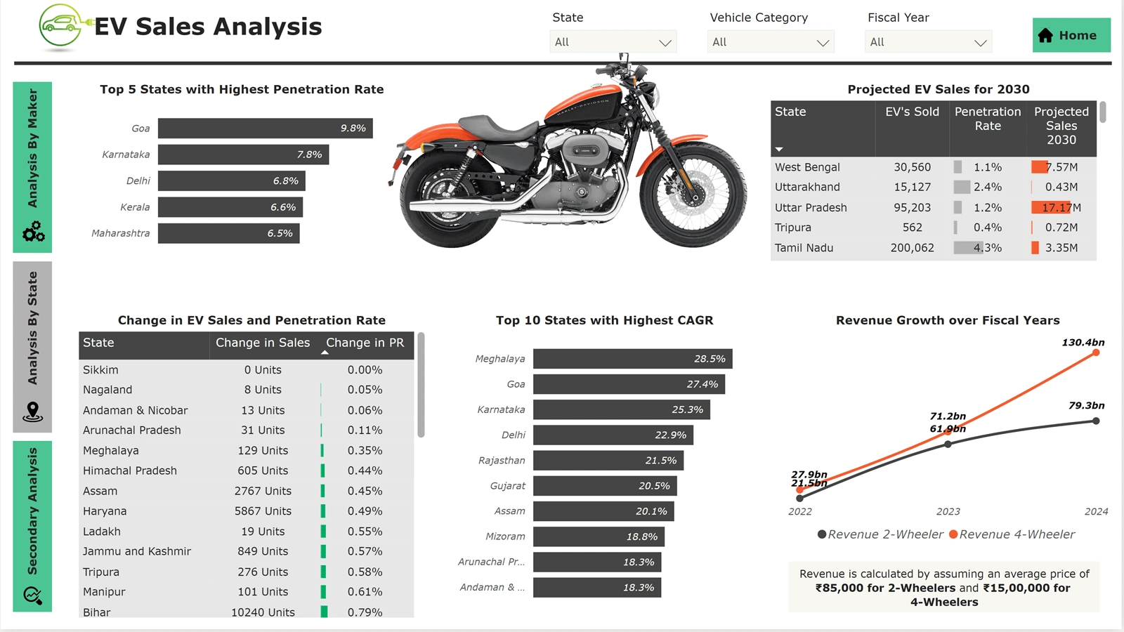 Primary analysis examines sales volumes, penetration rates, and regional variations, while secondary research explores market dynamics, infrastructure development, and policy impacts. The dashboard integrates data visualization tools including trend lines, comparative charts, and geographical mapping to present insights effectively.