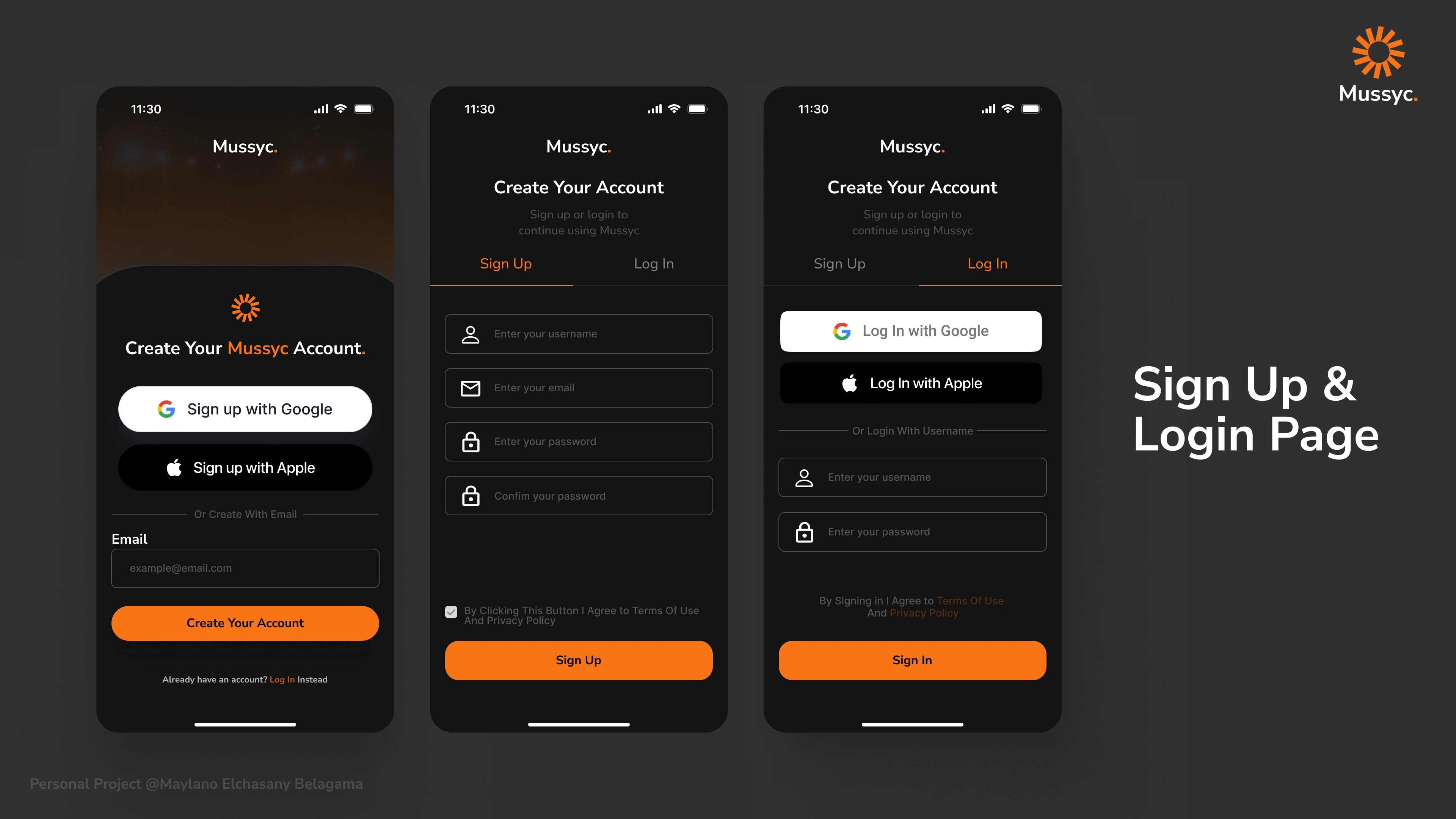 The Mussyc Music Mobile App UI/UX design focuses on enhancing user experience through a cleaner and simpler interface.