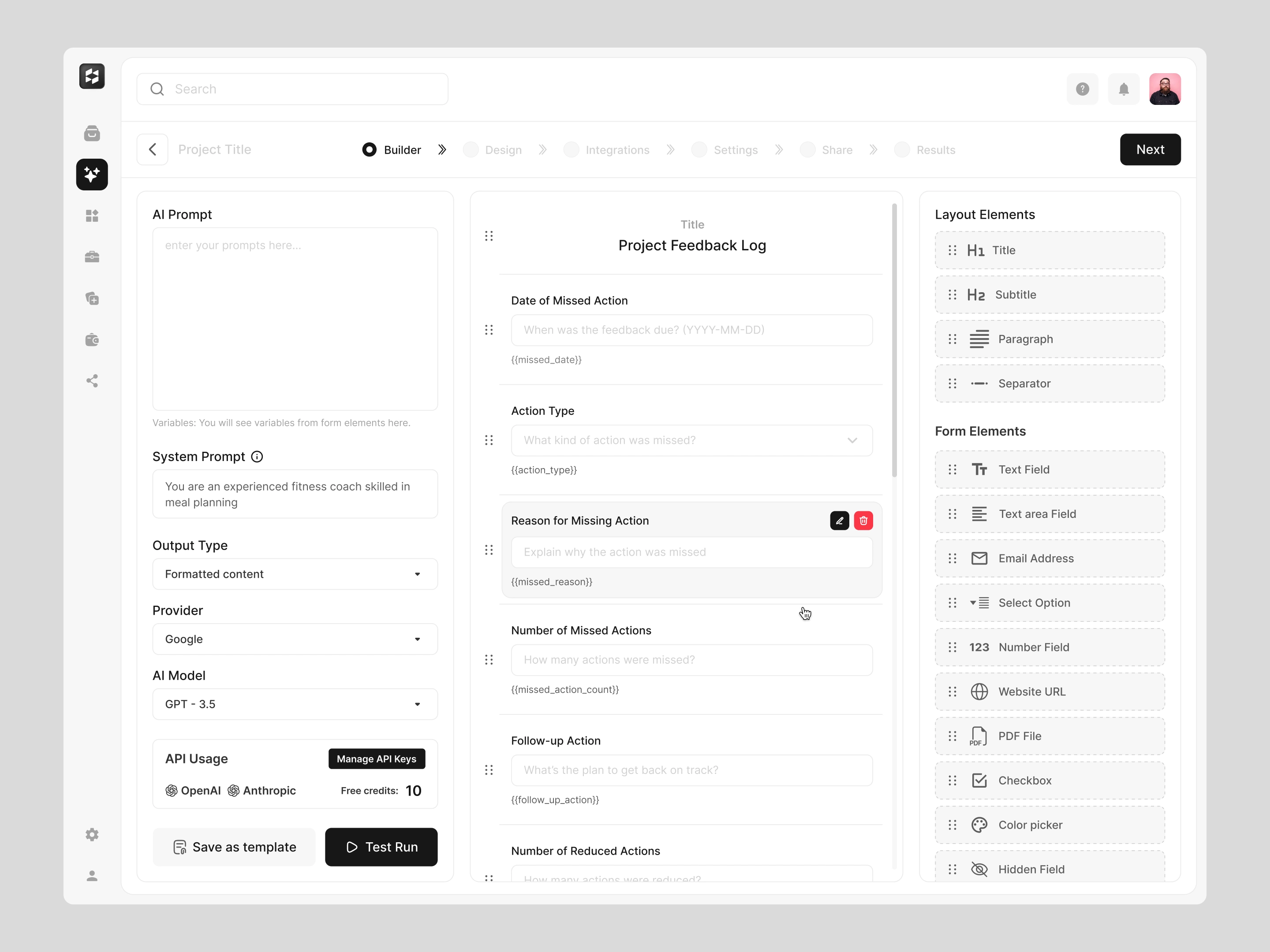 Form Builder UI/UX: Drag-and-drop simplicity for creating powerful, custom forms quickly and intuitively. Design meets function.