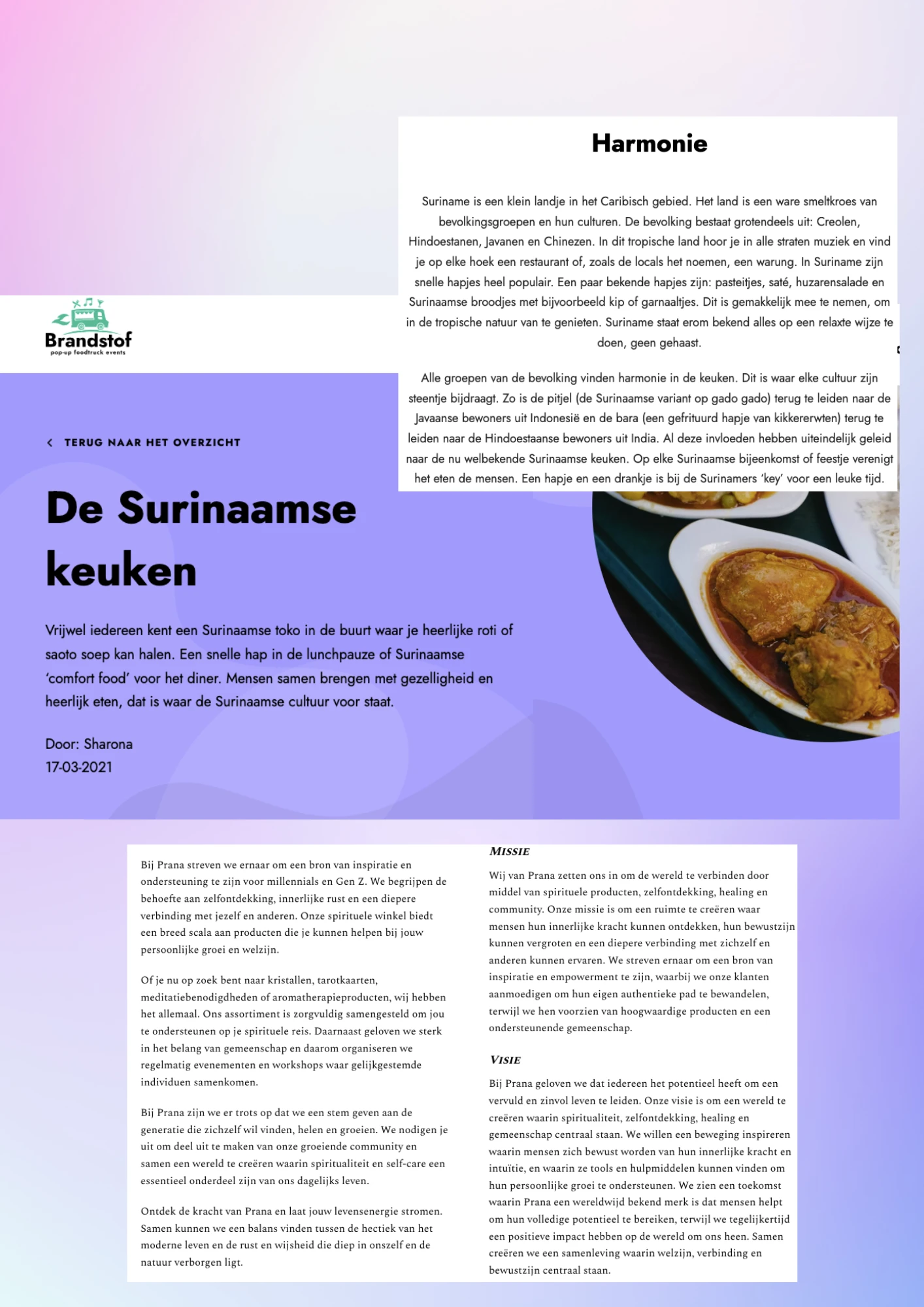 For Brandstof, I wrote long-form editorial pieces that bring culture, food, and identity together in a way that feels accessible and story-driven. In The Surinamese Kitchen, I focused on context and atmosphere first, then used concrete details and familiar examples to make the reader feel the place, the people, and the meaning behind the food.