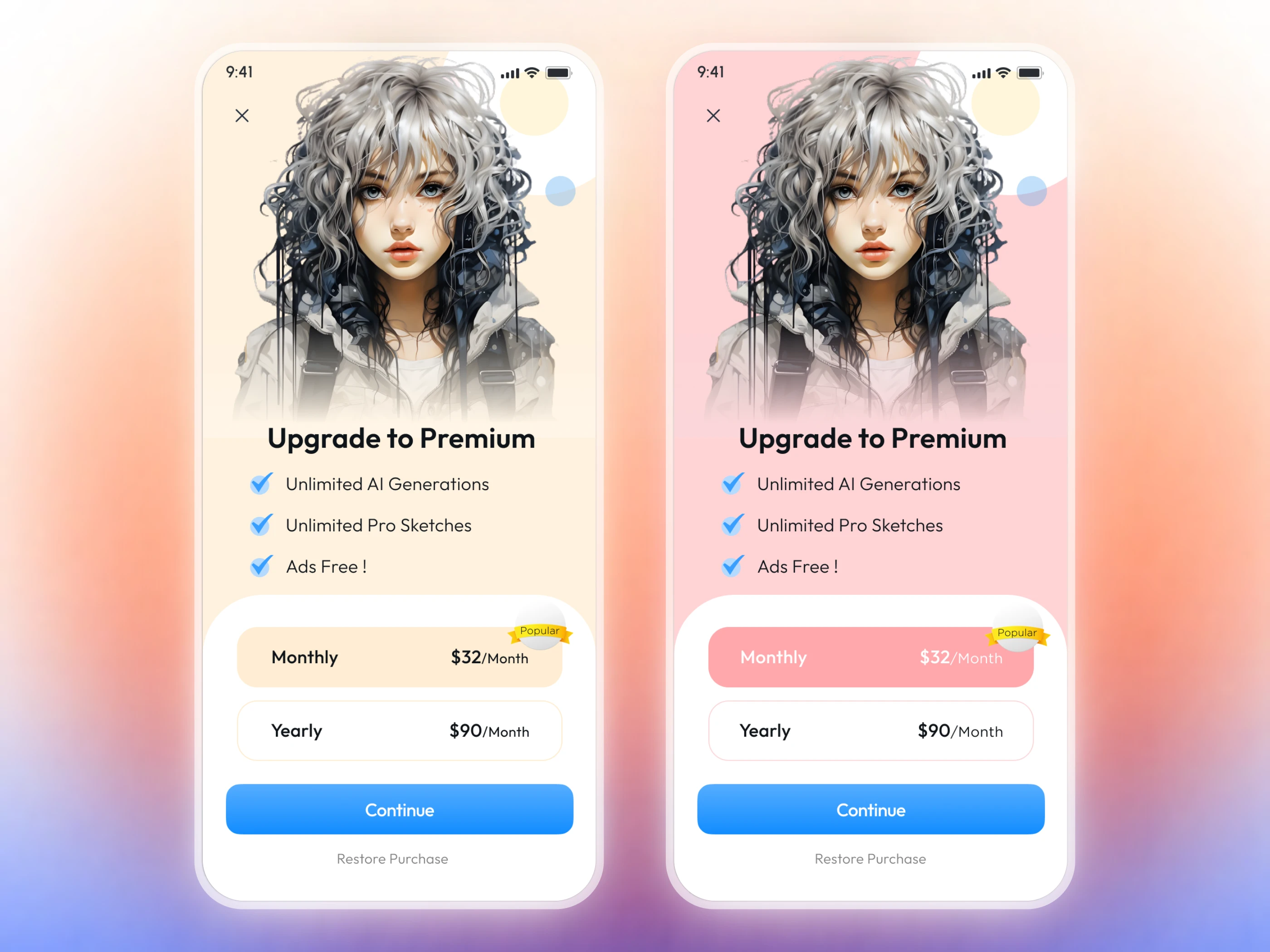 Designed a Premium Subscription UI for mobile apps with clear pricing layouts and smooth user flows. Built in Figma, optimized for mobile-first usability.