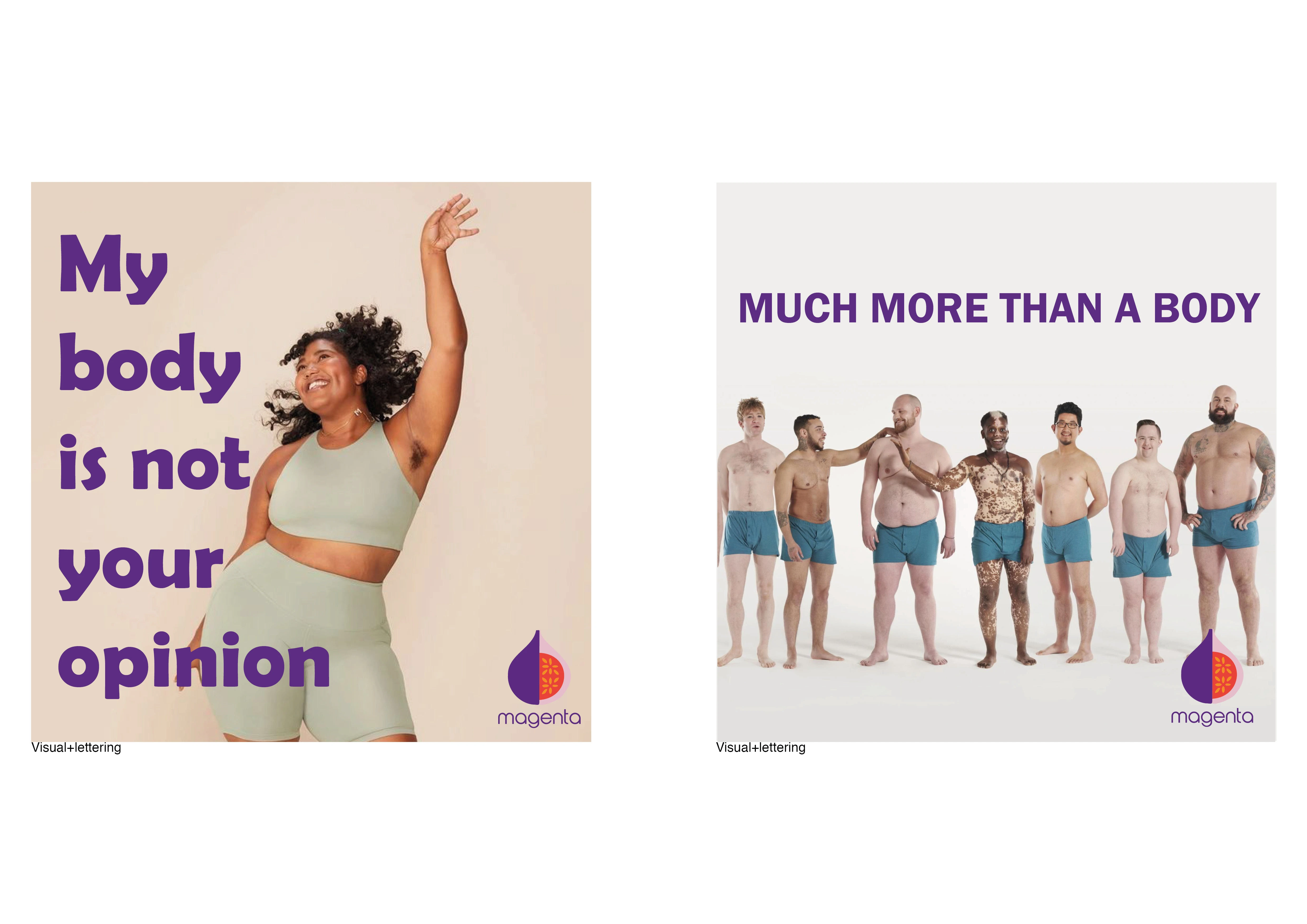 The branding project for the "Magenta" association, dedicated to the promotion of body positivity, aims to convey the message that every individual has the right to express their physicality in the way they deem most appropriate, without being judged by beauty stereotypes. to illustrate this concept, I used the comparison with figs, emphasizing that, despite the external variations, in the end they are always figs.