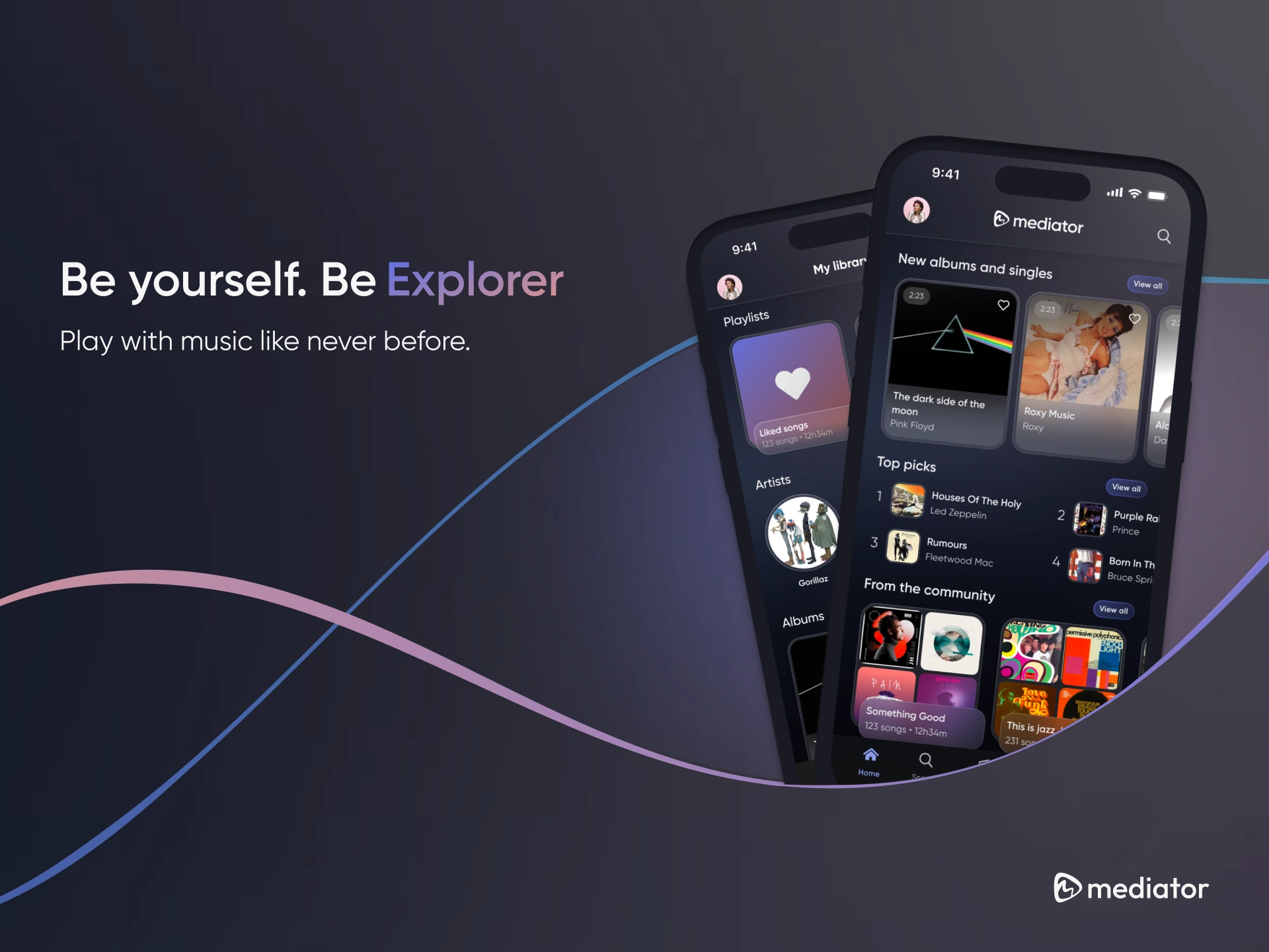 Community Feed: This section is a social space where users can see what their friends are listening to and follow new artists they might like.