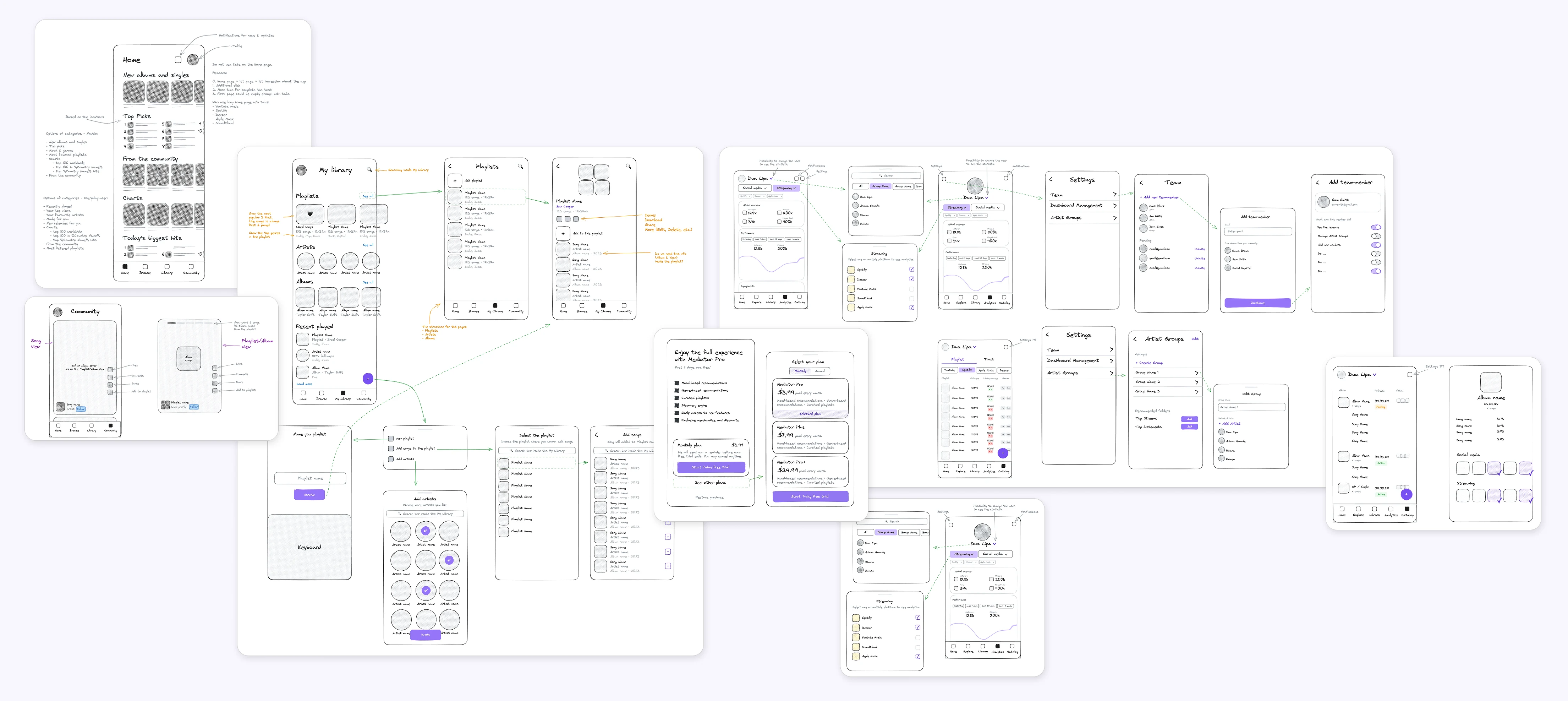 Subscription Plans: I created clear pages for "Mediator Pro" that show users exactly what they get when they upgrade, such as personalized recommendations and early access to new music.