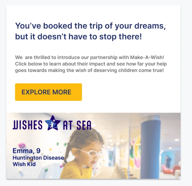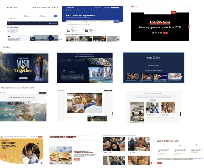 The sketches and overall brainstorming process of the design sprint helped us converge on having a focus on the booking process, where I strategized that placing a link for the Wishes at Sea page would be the best setting for a CTA for donations. After all, the user has completed their goal of booking a trip, and this placement would not detract from the booking flow.