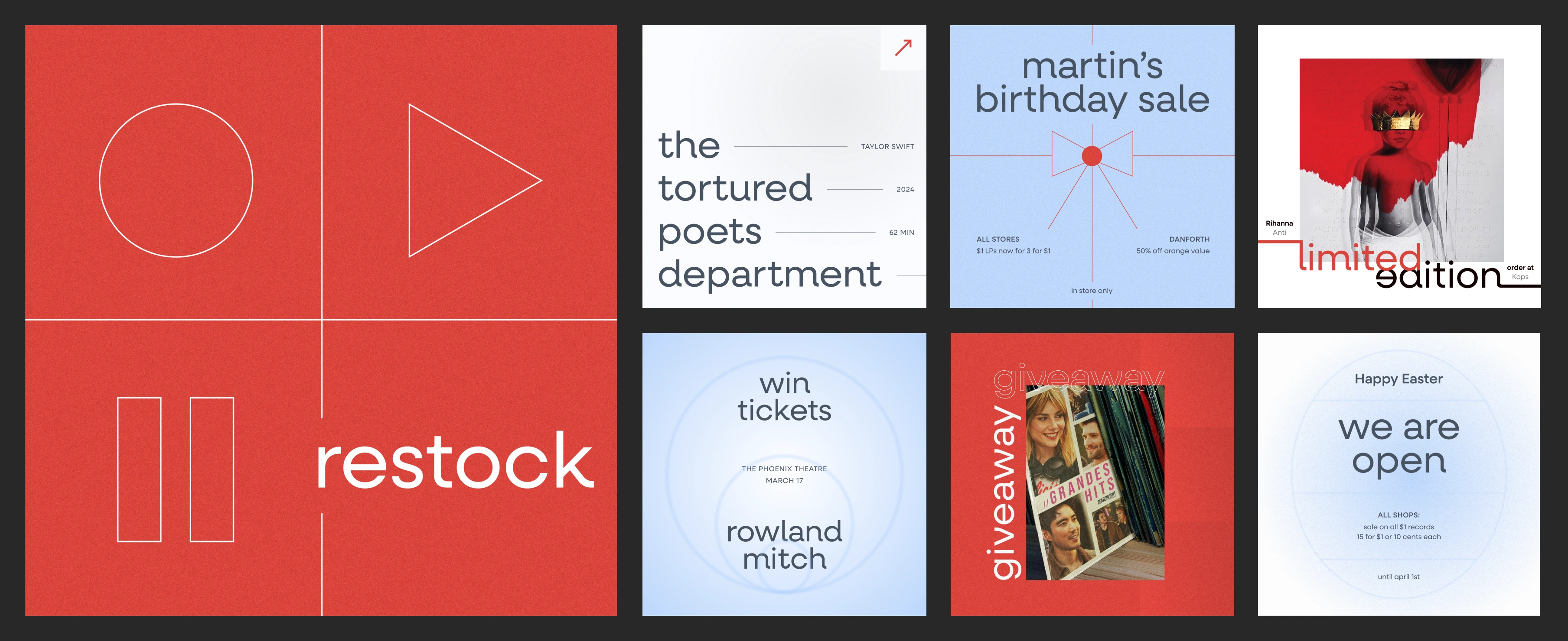 In this project, I had the opportunity to create captivating Instagram posts for a vinyl shop, blending the worlds of music and design. Each post is a visual symphony, incorporating elements of album art, bold typography, and engaging layouts. The result is a vibrant collection of designs that not only showcase the unique character of the shop but also resonate with the diverse community of music enthusiasts.