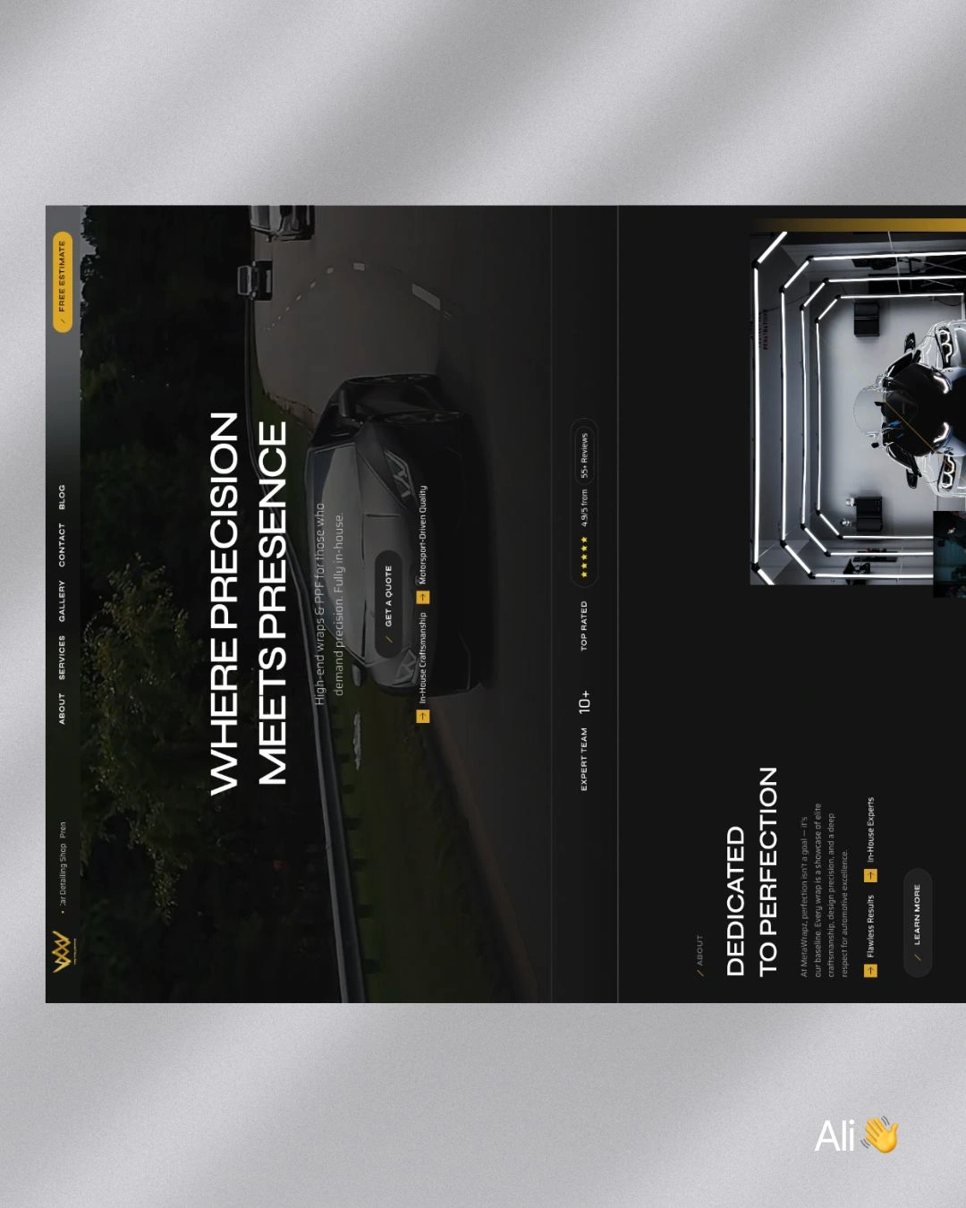 A high-end, conversion-driven website designed for a U.S. premium car detailing brand specializing in wraps, PPF, and tinting. Built to reflect luxury craftsmanship and attract high-value automotive clients.