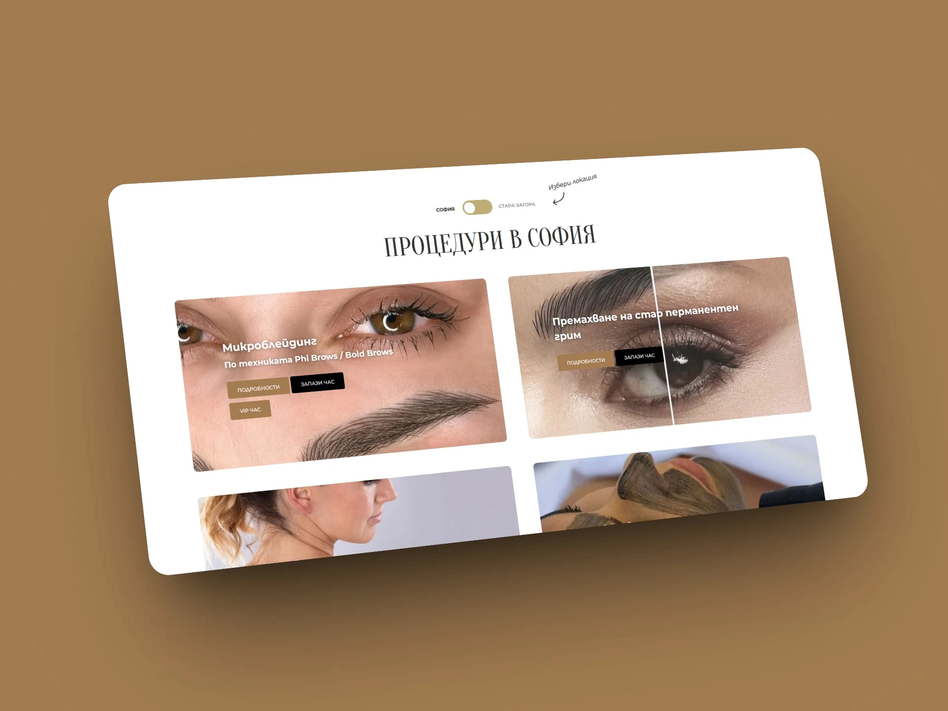 Multi-location UX. When she opened a second salon, I introduced a smooth location selector on the homepage so visitors choose the city first, then see the relevant procedures.