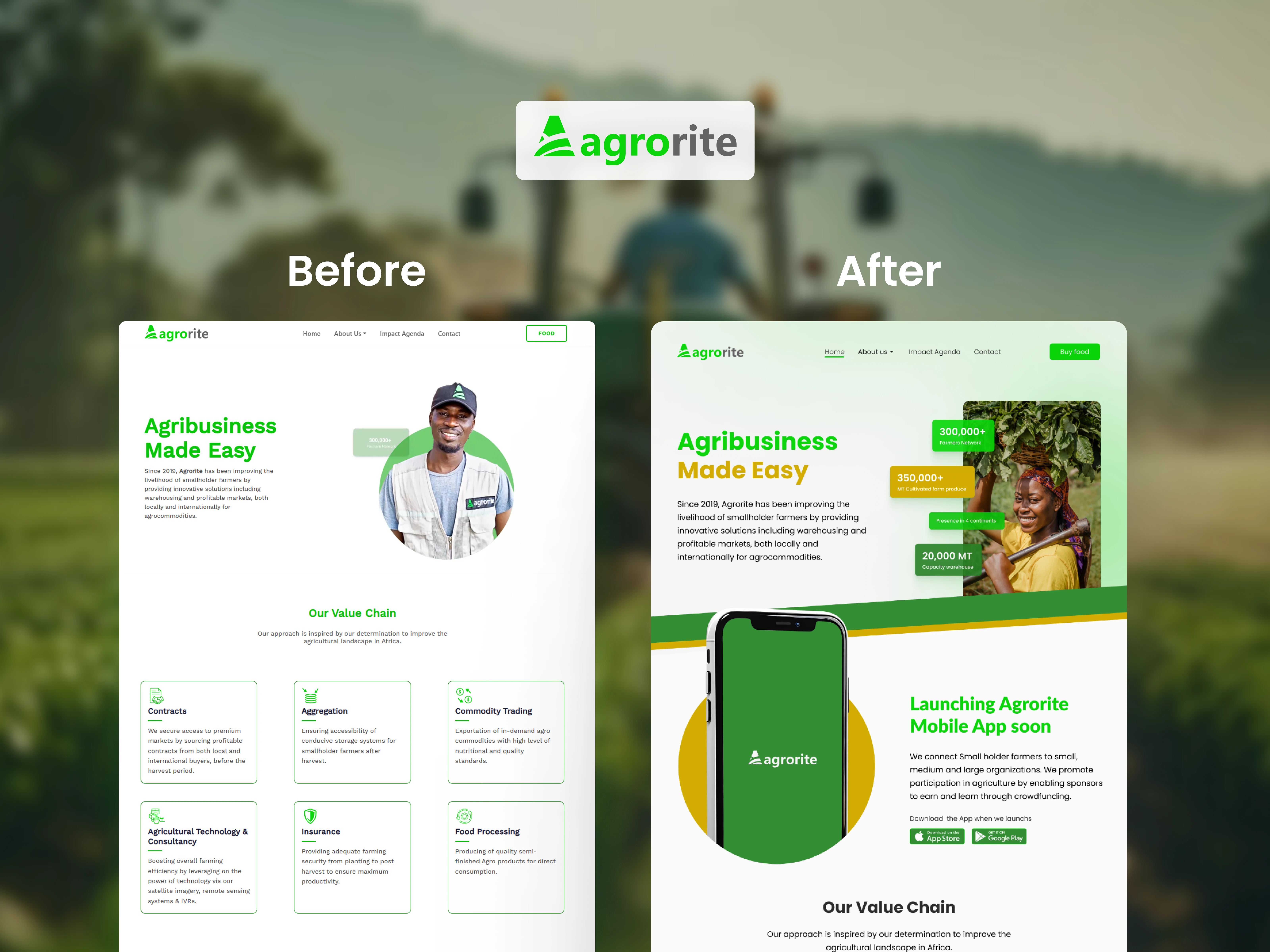 Agrorite isn’t just another agro brand — they connect smallholder farmers in Nigeria with global opportunities. My job? I redesigned their website to tell that story better. It had to look sharp, feel trustworthy, and most importantly, connect with both local farmers and international buyers.