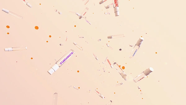 To synchronize precisely with the music and tempo, the vial bounces were animated by hand, while the final cushion effect was created using C4D's new fabric simulation engine.
