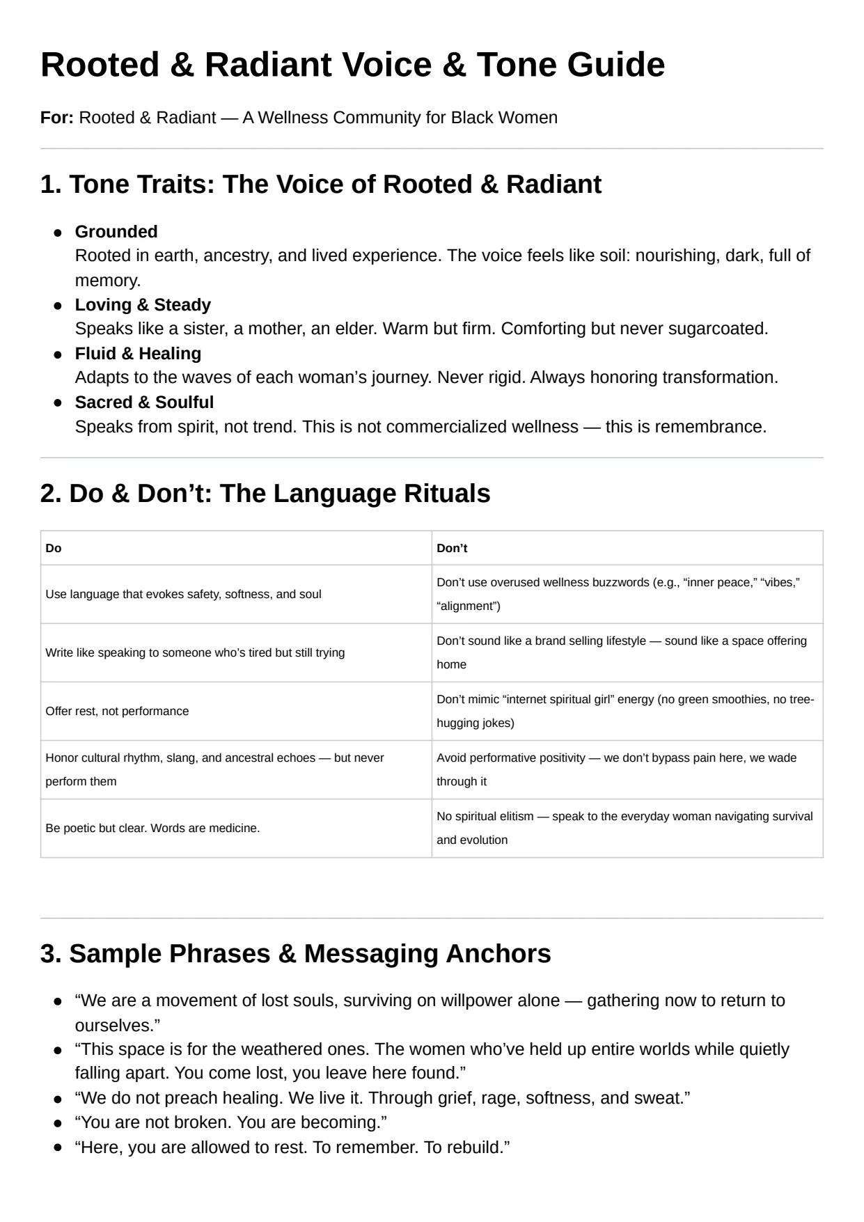 Background: They’re relaunching and need help defining a voice that feels soft but powerful, and grounded in cultural wisdom without sounding like a yoga cliché.