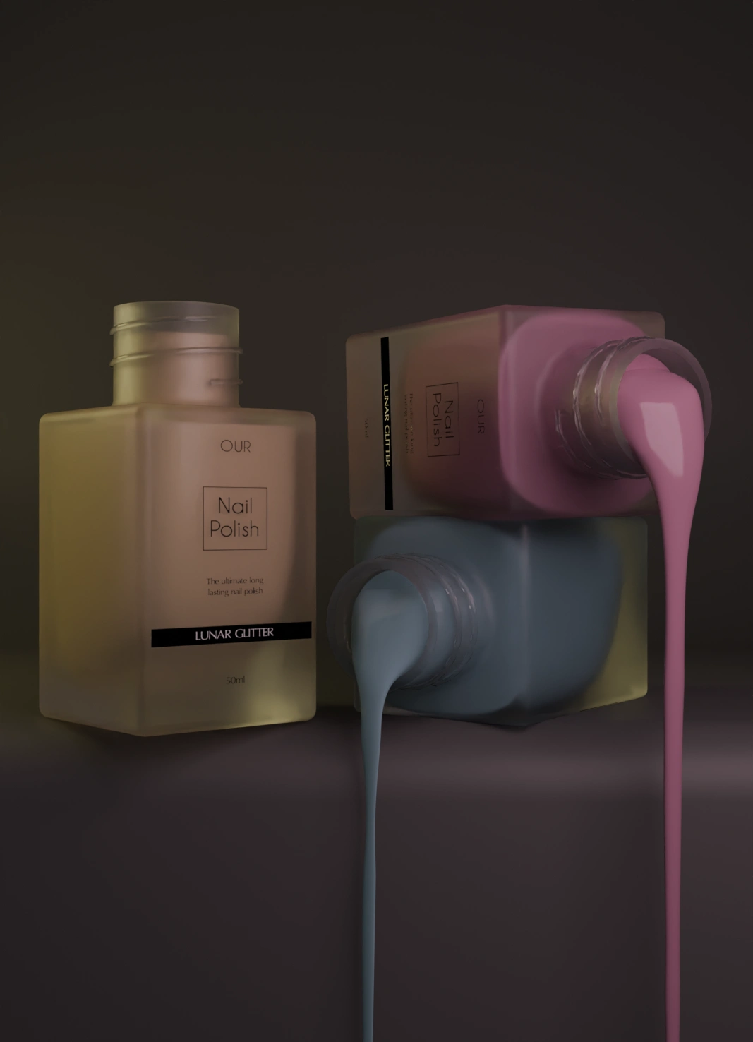 A mock up of nail polish bottles made in blender and rendered in cycles engine