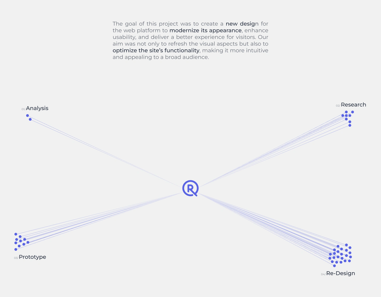 The primary objective of this project was to redesign the web platform with a focus on modernizing its visual appearance, improving usability, and elevating the overall user experience. We aimed to go beyond simply updating the aesthetics; our goal was to create a design that seamlessly combines form and function. By enhancing the site’s structure and navigation, we strived to make it more intuitive and user-friendly for a diverse audience. The redesign also included optimizing the platform's functionality to ensure smooth interactions, faster load times, and an engaging experience that caters to the needs and expectations of its visitors.