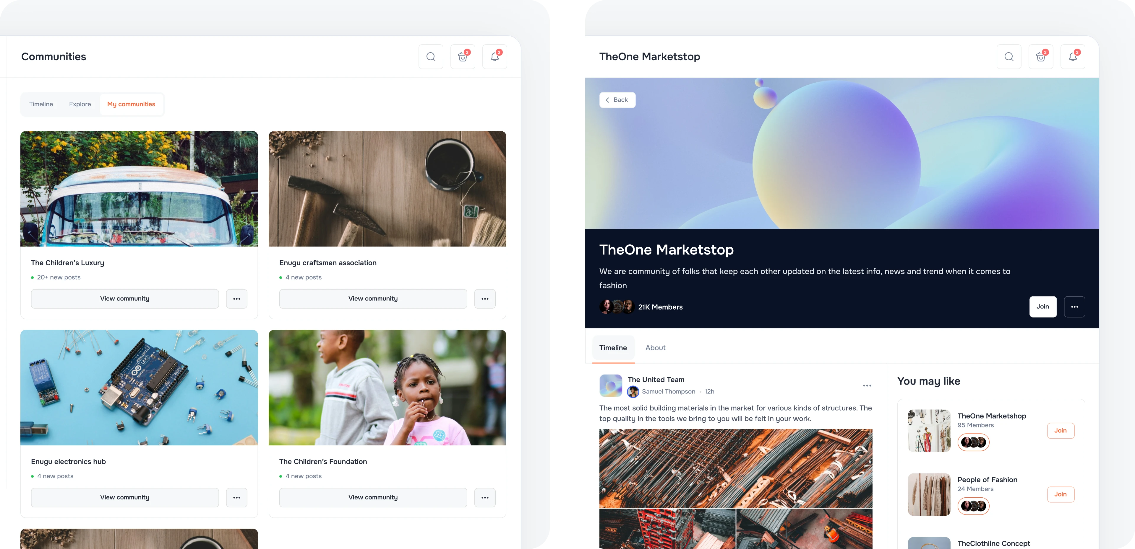 Community-powered shopping experience: We designed a unified platform where shopping feels as natural as chatting with friends. Think of it as your local marketplace brought to life in the digital world – where you discover great finds through community connections, shop with confidence from verified businesses, and build real relationships along the way.