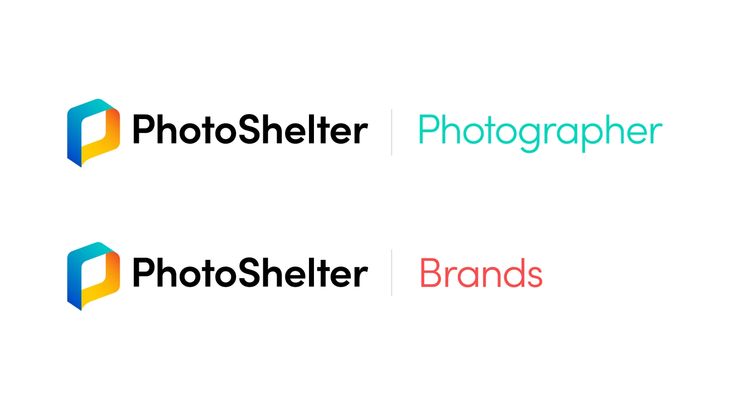 For this, we kept the overall structure of the formerly known “P-Cube” logomark, and transformed it into something friendlier and sleeker, which we now refer to as the “P-loop”. The P-loop’s ribbon structure was meant to emphasize the feeling of speed, movement, and fluid direction, and alluding to the light-speed in which the PhotoShelter product would work in. This was emphasized more so by the new color-way of the P-loop, with the two contrasting gradients representing the two products PhotoShelter presents for its two different member base: Brands and Photographers. This direction of duality is a motif that was carefully considered amongst the other factors of the rebrand, such as color palettes and iconography, as to show how two products live under the umbrellla of a unified brand. This was also due to migrating the formerly known “Libris by PhotoShelter” sub-brand and product (a product targeted at enterprises, brands, and organizations) into the overall PhotoShelter visual umbrella.