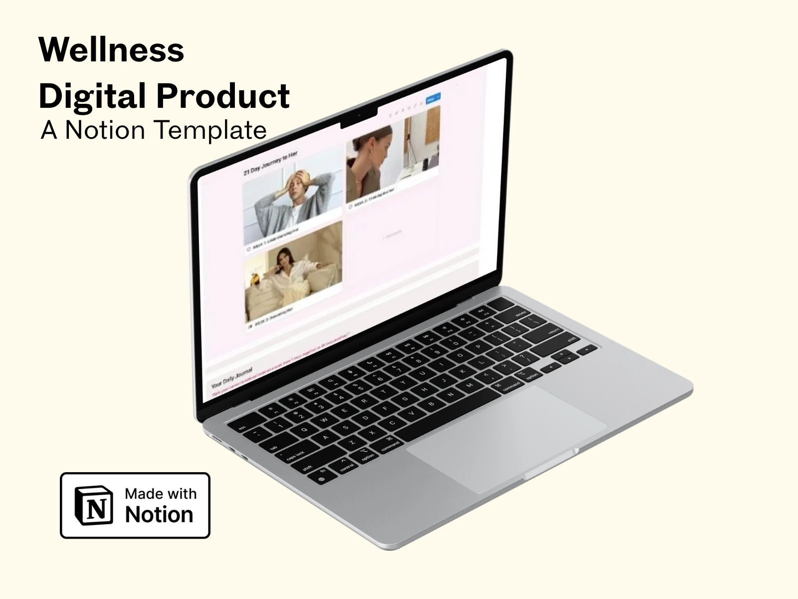 I designed and developed a custom duplicable Notion system for a wellness coach offering a 21-day self-discovery journey.