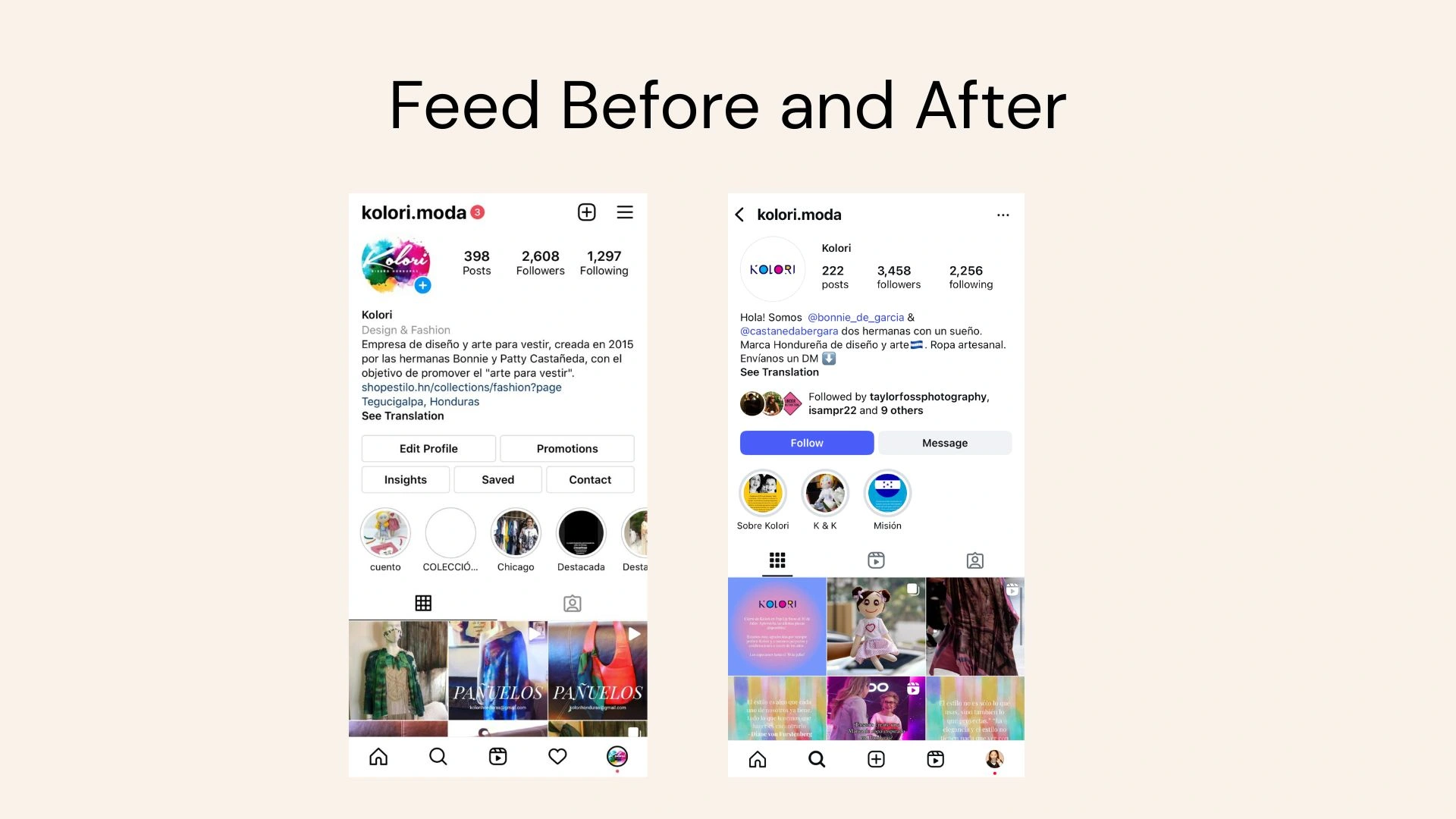 Redesigned a confusing and outdated social media layout into a cohesive, colorful, and brand-consistent feed that elevated the overall aesthetic and improved audience connection.