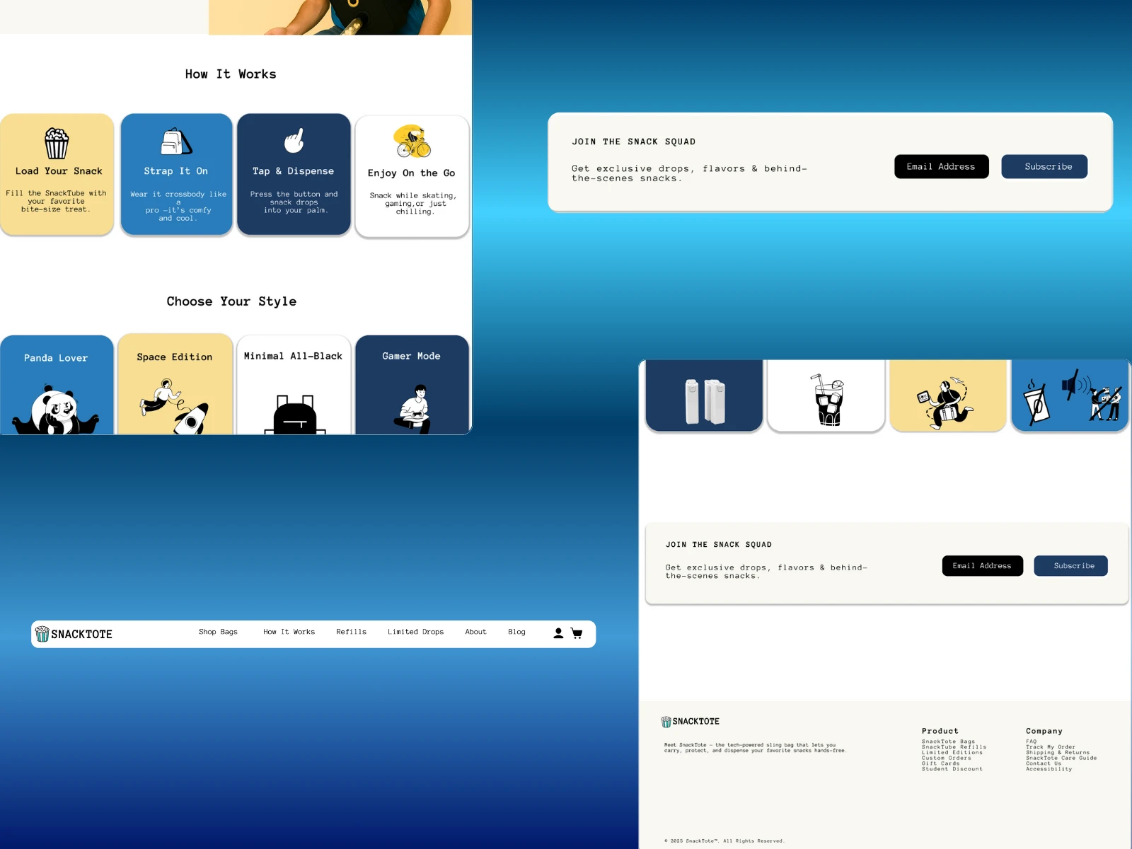 🙋♂️ Why Hire Me I bring a blend of creativity, clarity, and user-focused precision to every design challenge. With SnackTote, I transformed a delightfully offbeat idea into a scroll-stopping, conversion-friendly experience. From bold typography to tactile UI touches, every element is crafted to energize users, tell a compelling story, and make the product unforgettable. Let’s make something fun—and functional—together.