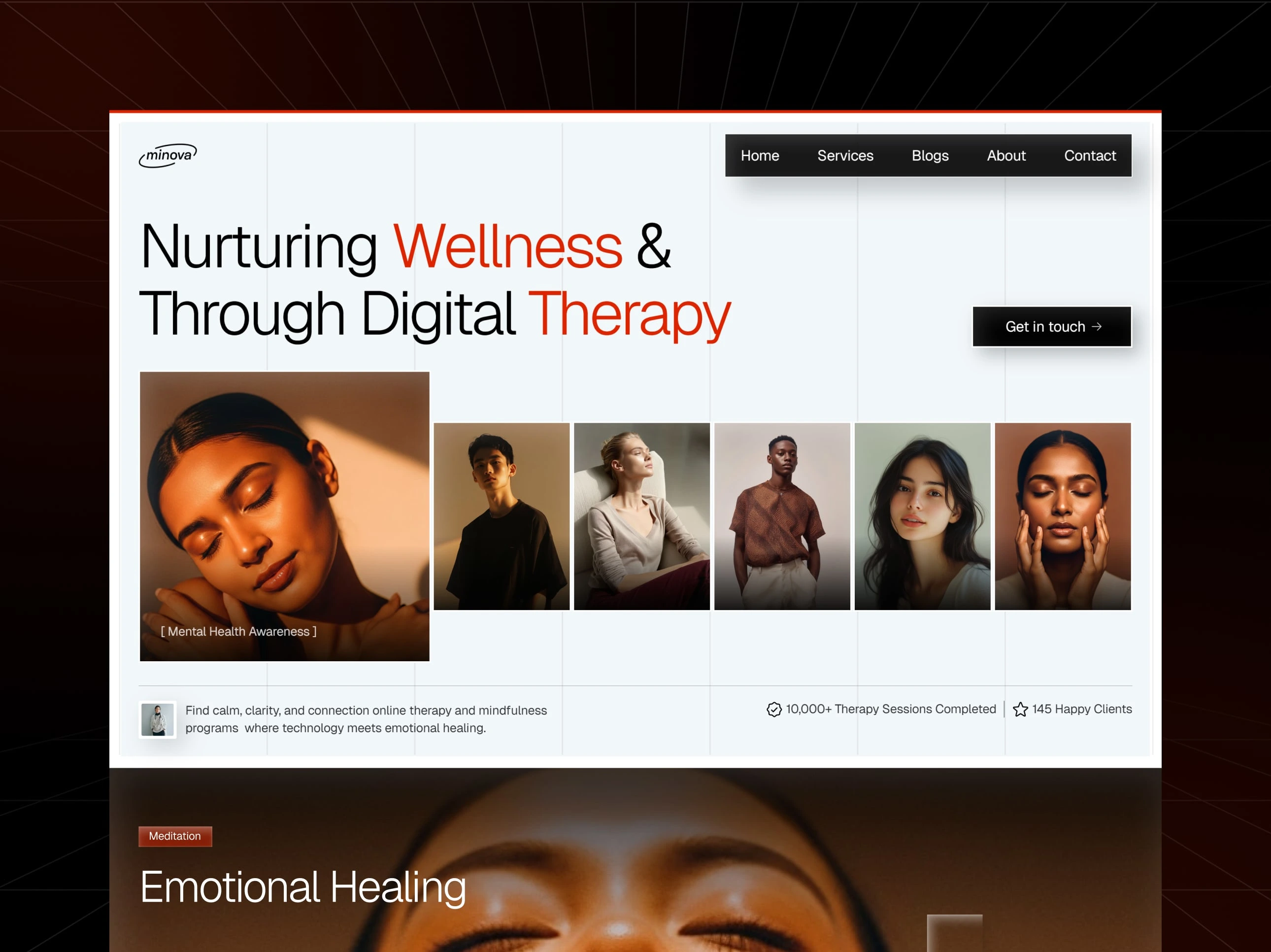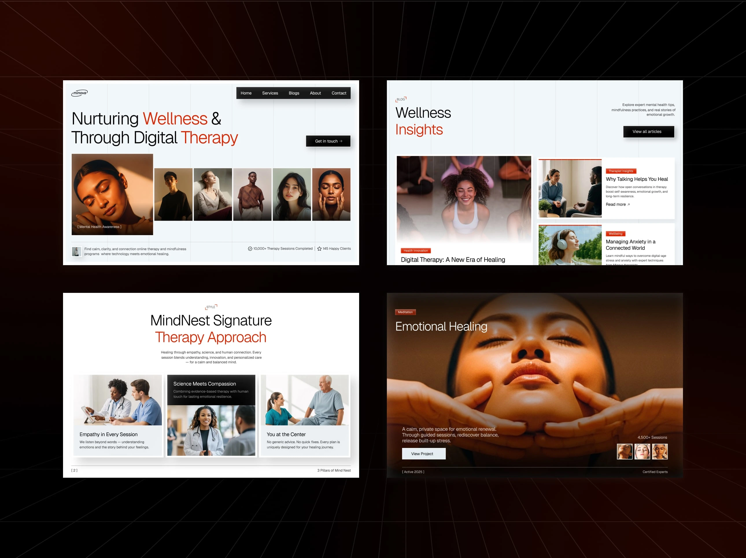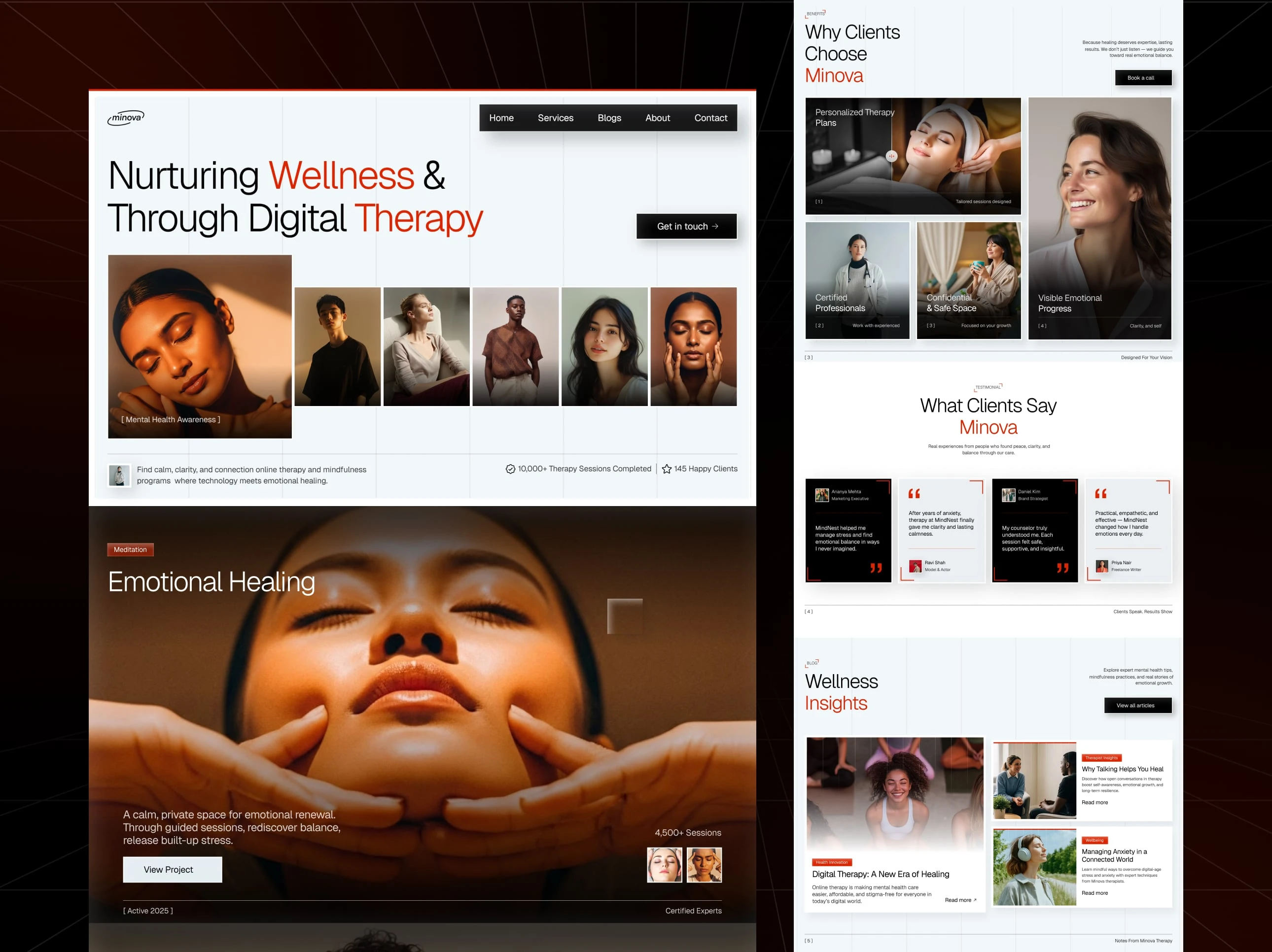 We crafted a modern, emotionally centered therapy website designed to communicate clarity, trust, and calmness. The experience focuses on strong visuals, smooth animations, and clean layouts to enhance user engagement and wellness storytelling.