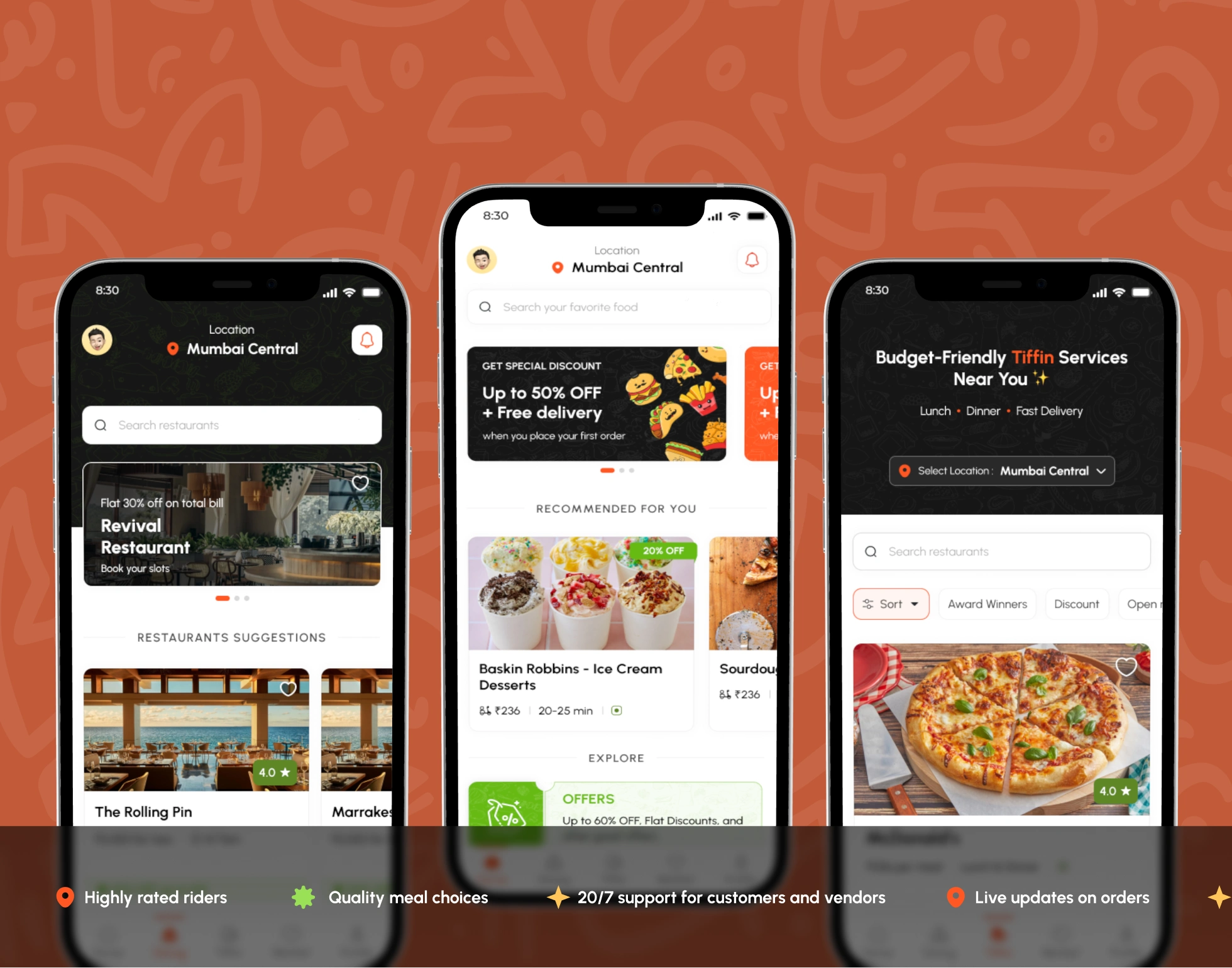Foodie is a food delivery marketplace that connects users with reliable homemade meal providers. The platform bridges the gap between busy individuals seeking healthy, affordable home-cooked meals and trusted vendors who deliver them fresh daily. The goal was to design a platform that feels simple, clean, and trustworthy — reflecting the warmth of homemade food while maintaining the efficiency of a digital marketplace.