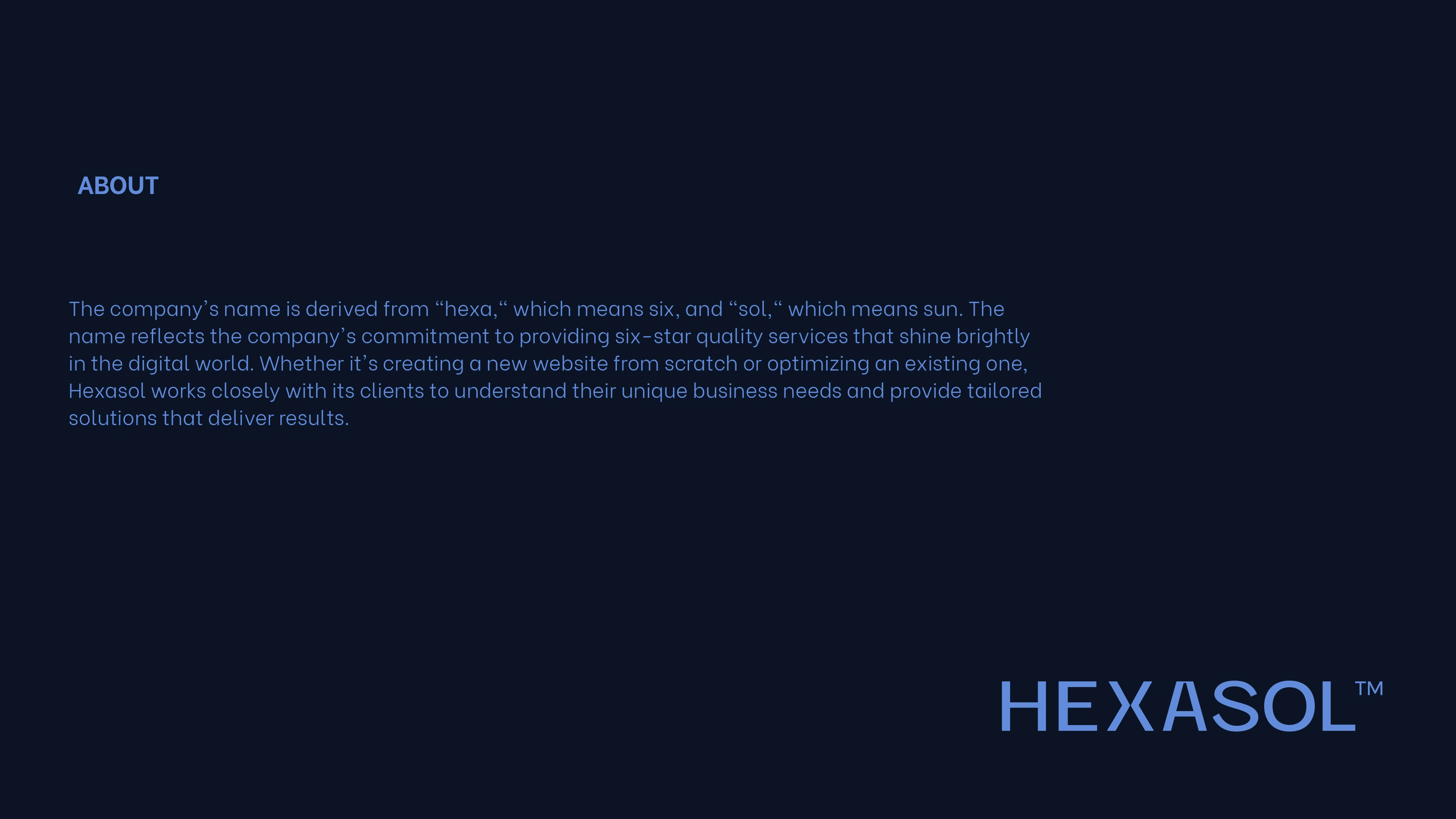 The company's name is derived from "hexa," which means six, and "sol," which means sun. The name reflects the company's commitment to providing six-star quality