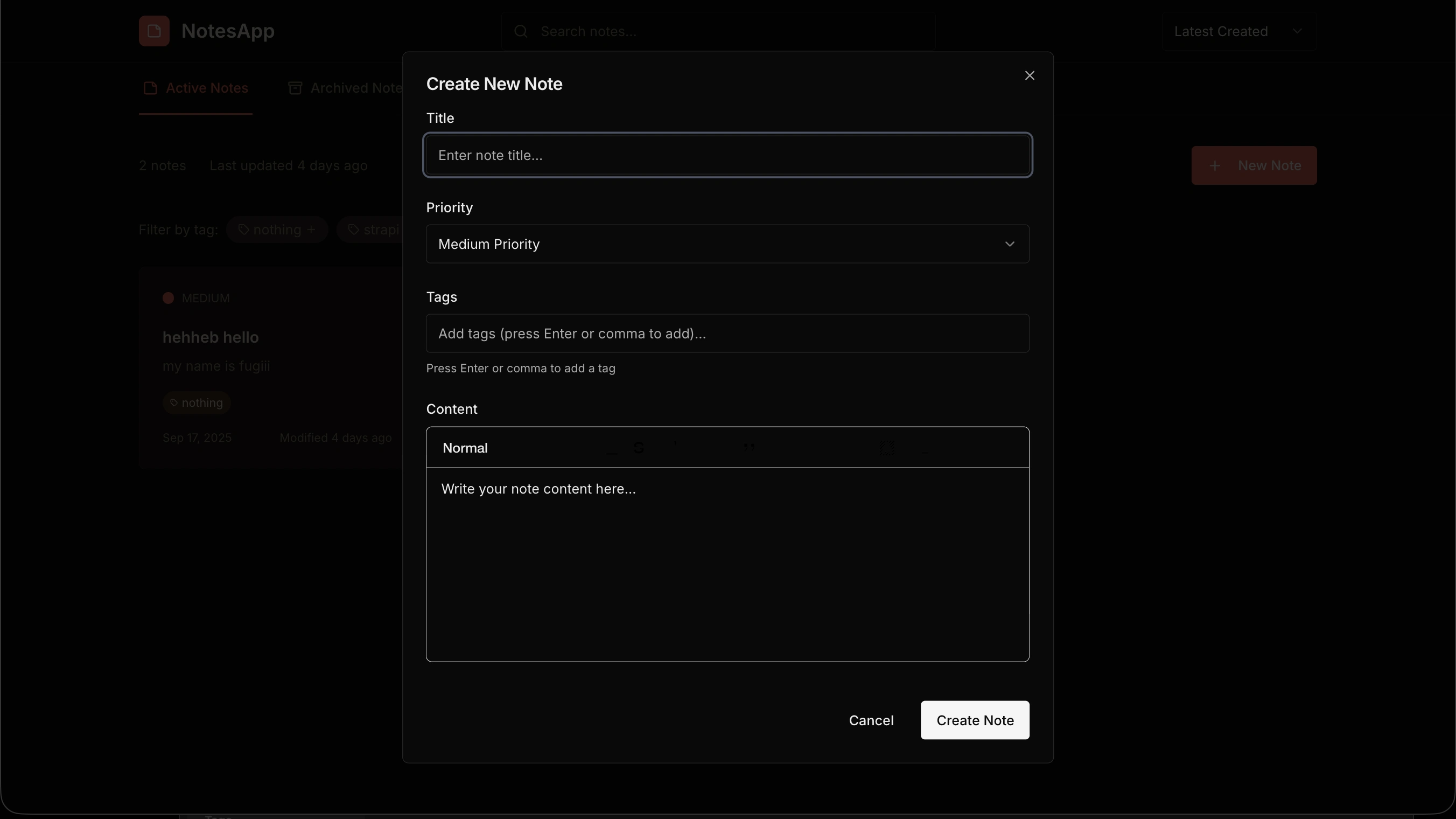 Note Vault is a modern note-taking application built for productivity and organization. It goes beyond basic text storage by allowing users to create rich, structured notes with priorities, tags, and a clean interface for sorting and filtering. The goal was to make note-taking as flexible as possible—whether for quick thoughts, task management, or project documentation.