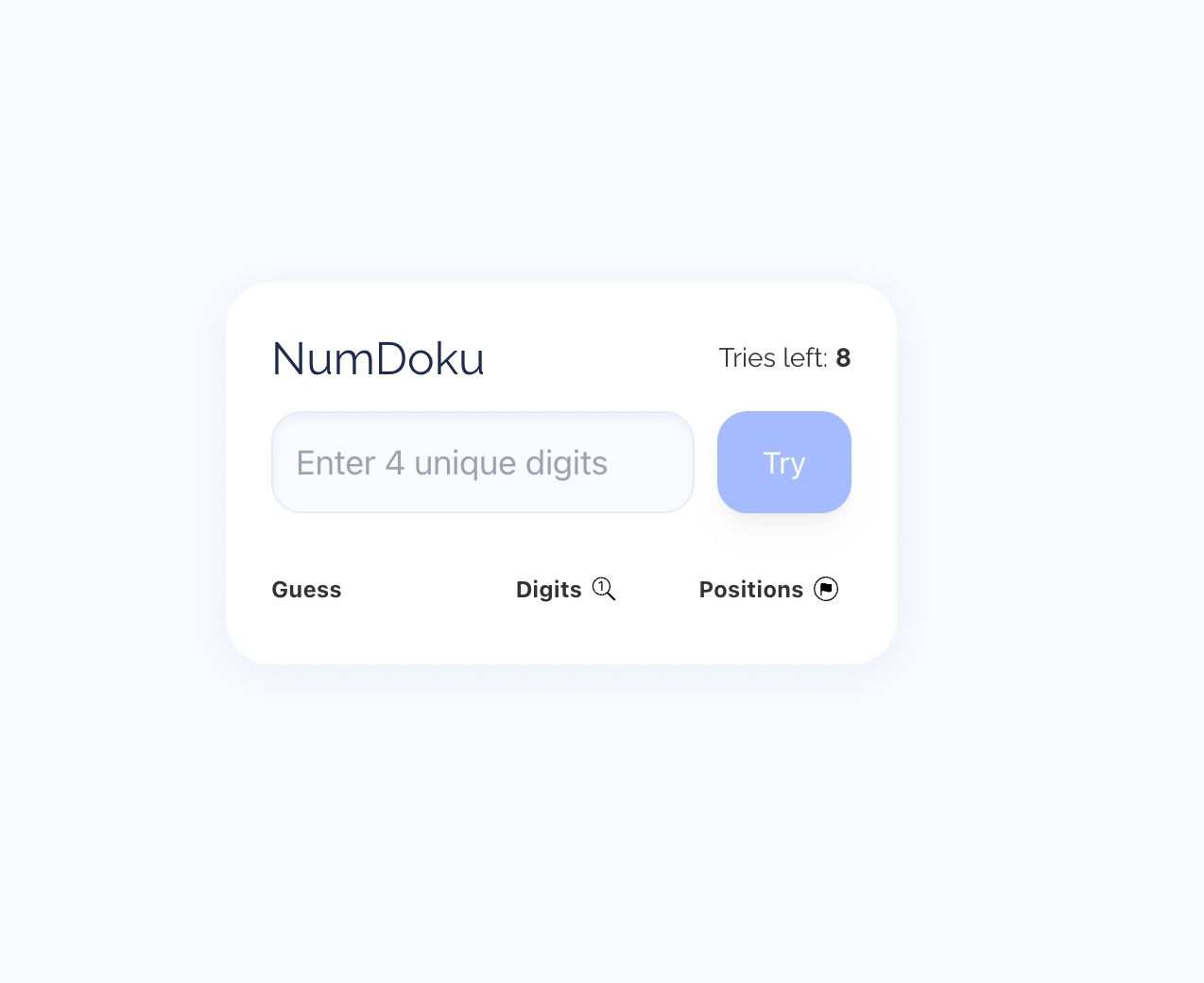 Guess a unique 4-digit secret number. With each attempt, you receive clues on correct digits and their positions. Solve the puzzle in 8 tries to win!