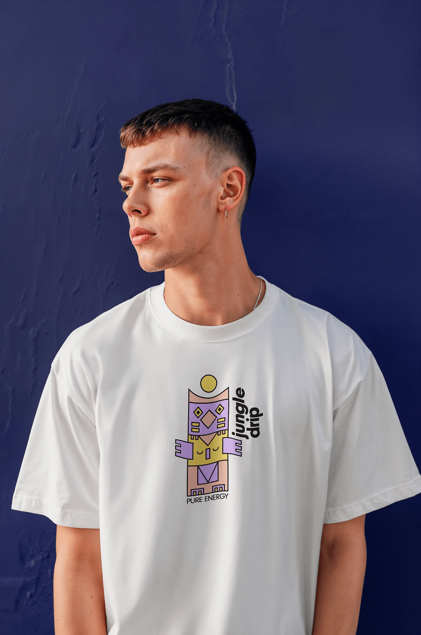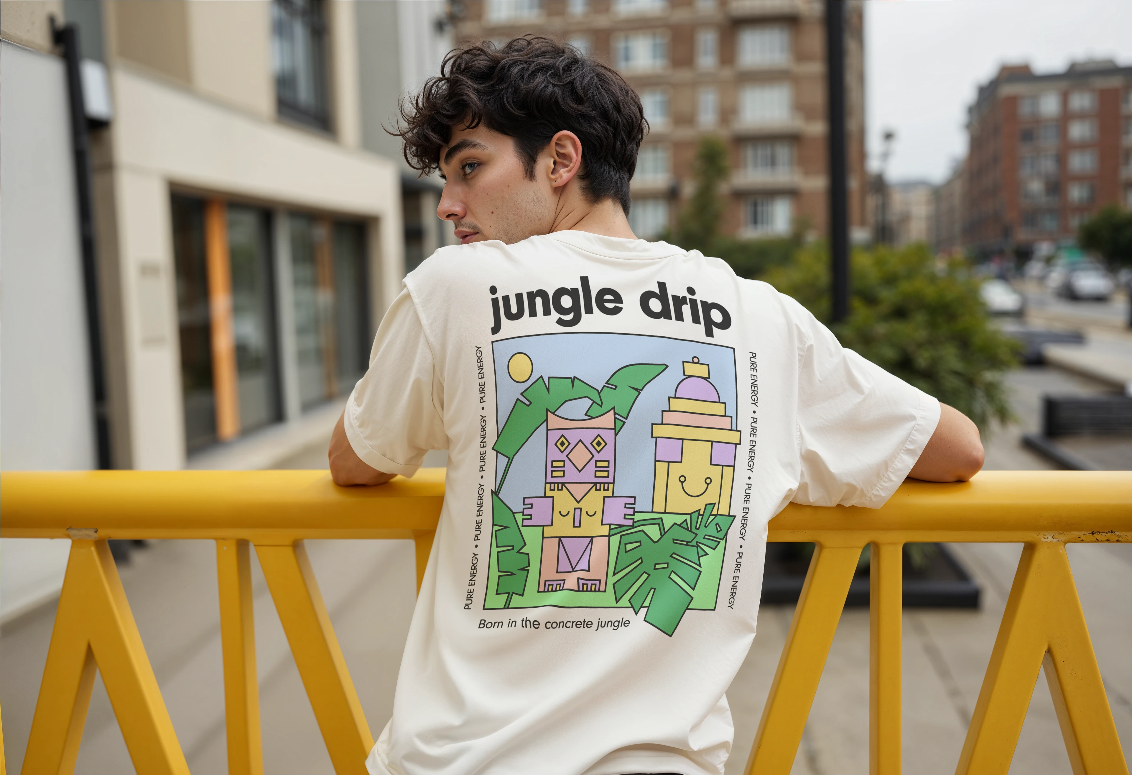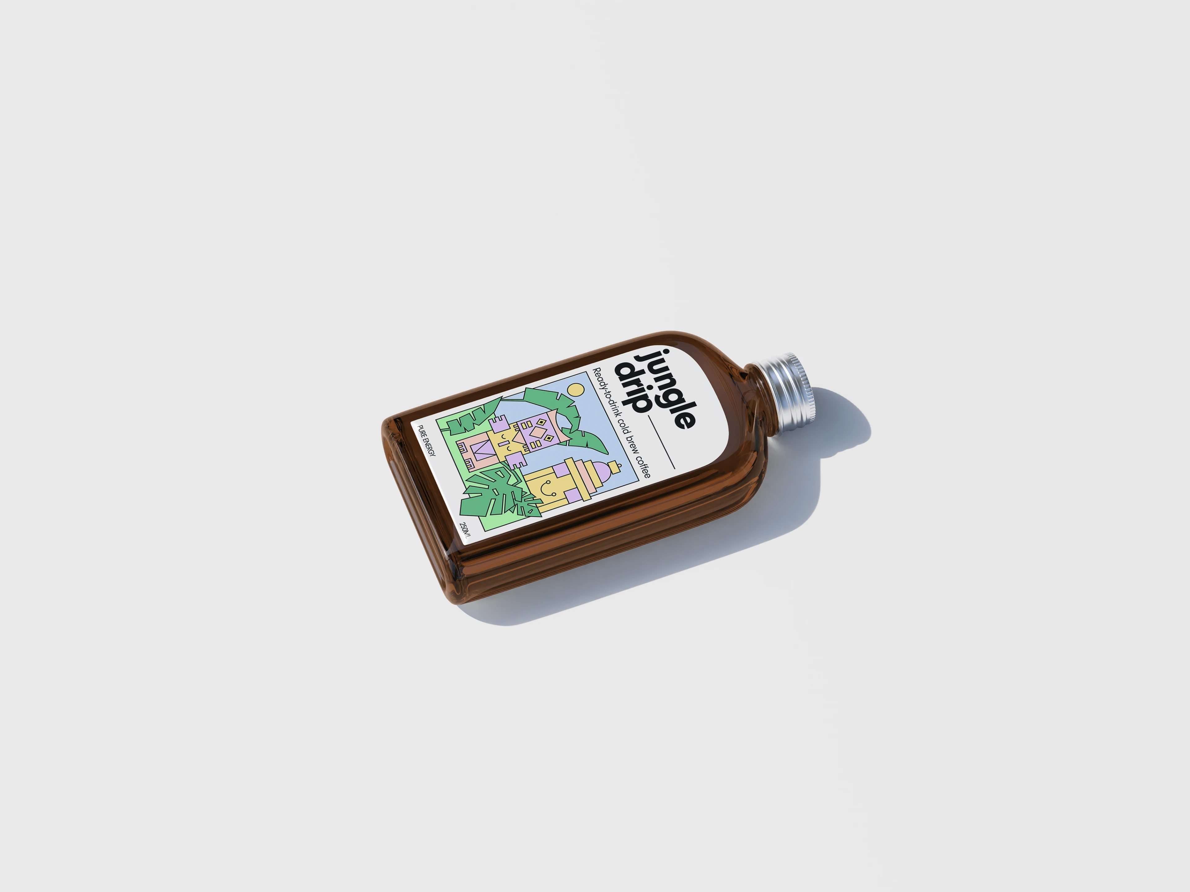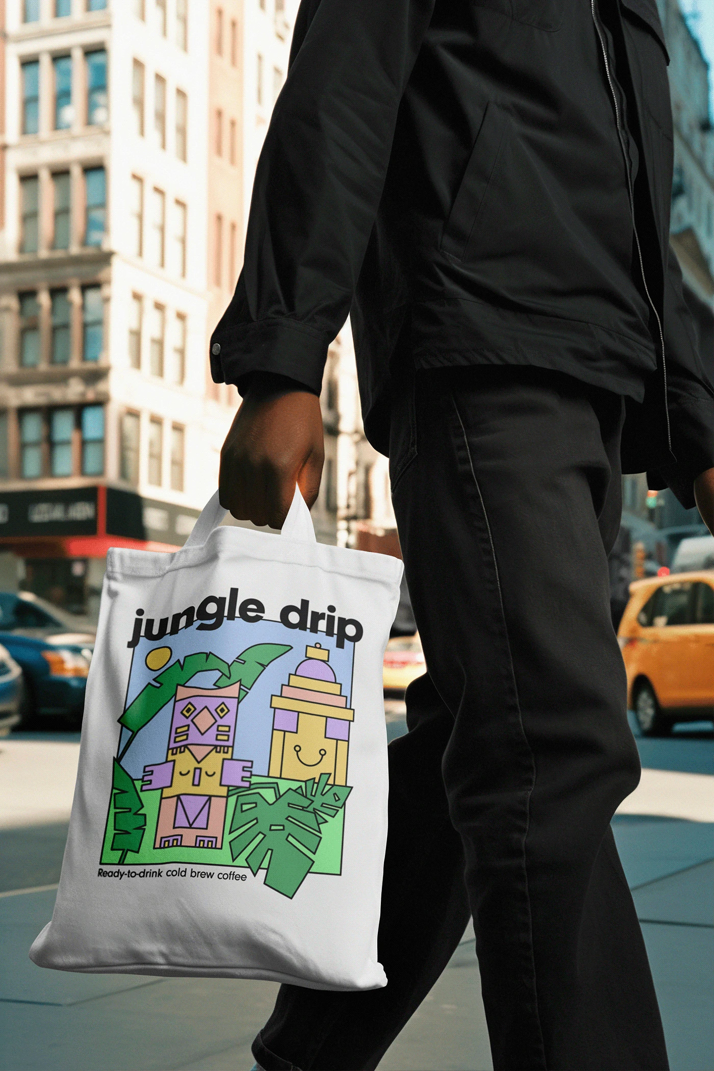 For the typography, a strong, clean font was used for "Jungle Drip" that’s highly legible and has a friendly yet confident presence. The supporting text like "Ready-to-drink cold brew coffee" is kept concise and clear, ensuring that the product's essence is immediately understood.