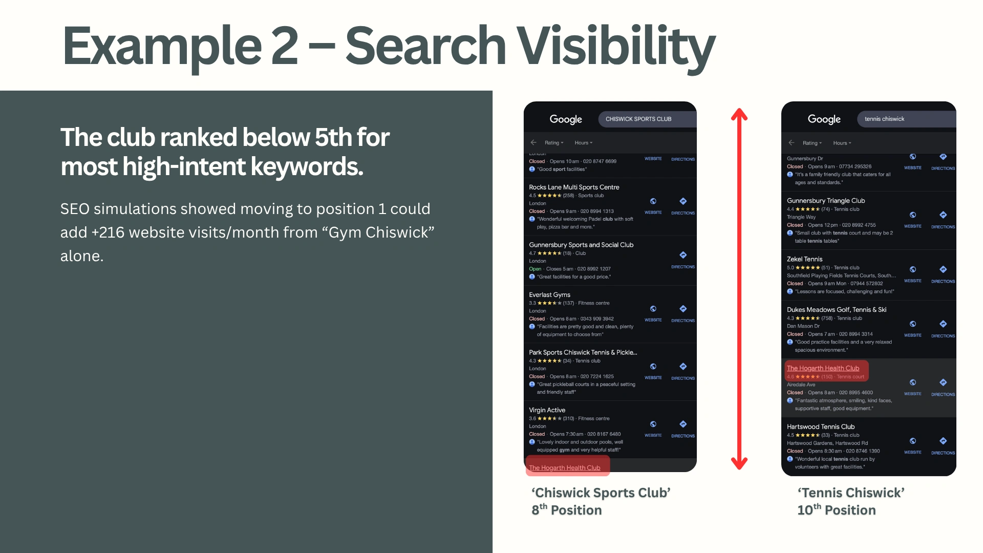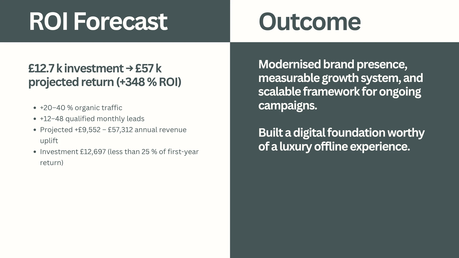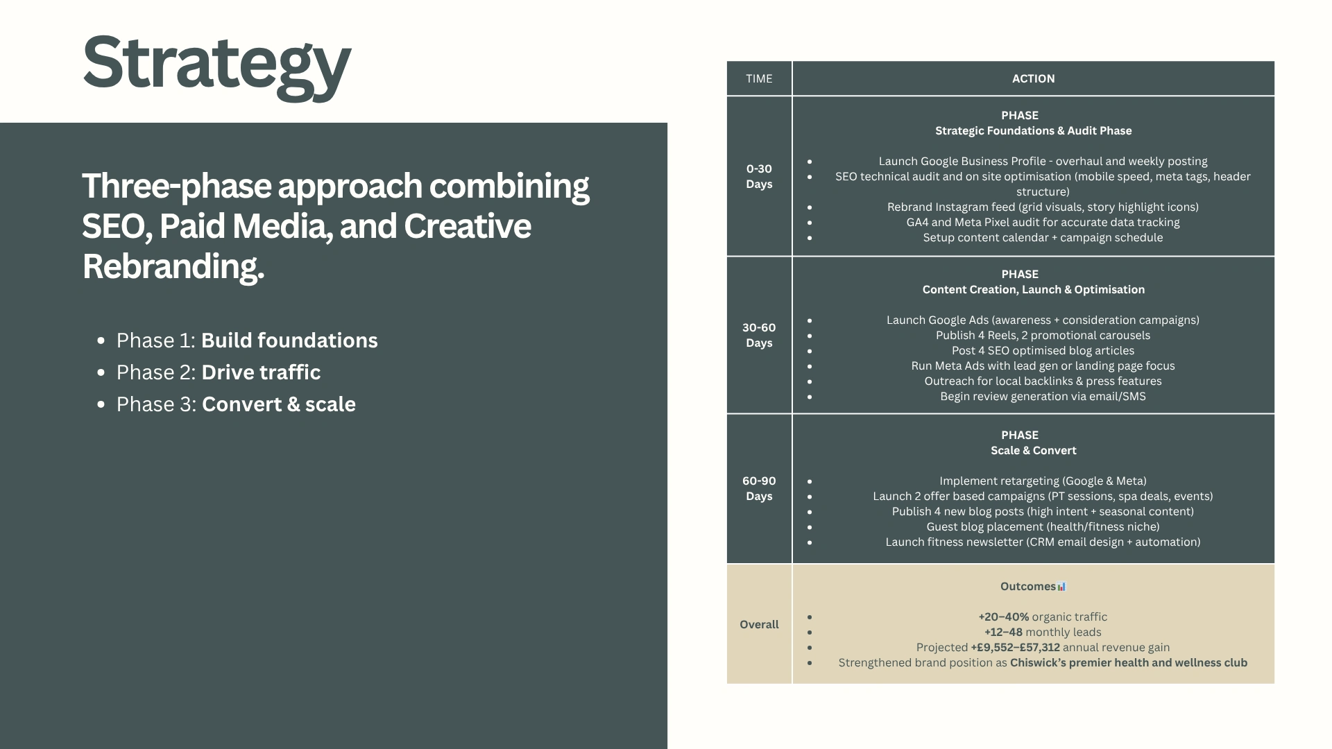 Built a 3-phase SEO and paid media strategy for a London wellness brand, driving leads, traffic, and £57K in projected annual revenue.