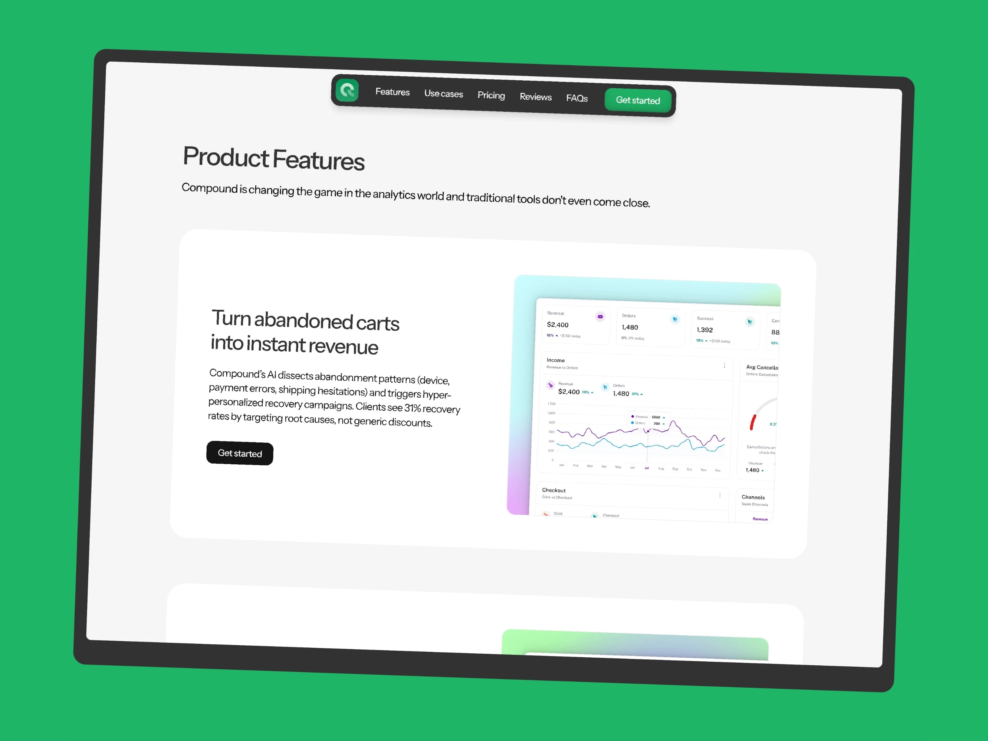 Compound hits 95+ on Google Lighthouse scores, outperforming 92% of templates on the market. But performance alone doesn't close deals. I refined every layout element through 37,000+ user tests to ensure the design actually converts.