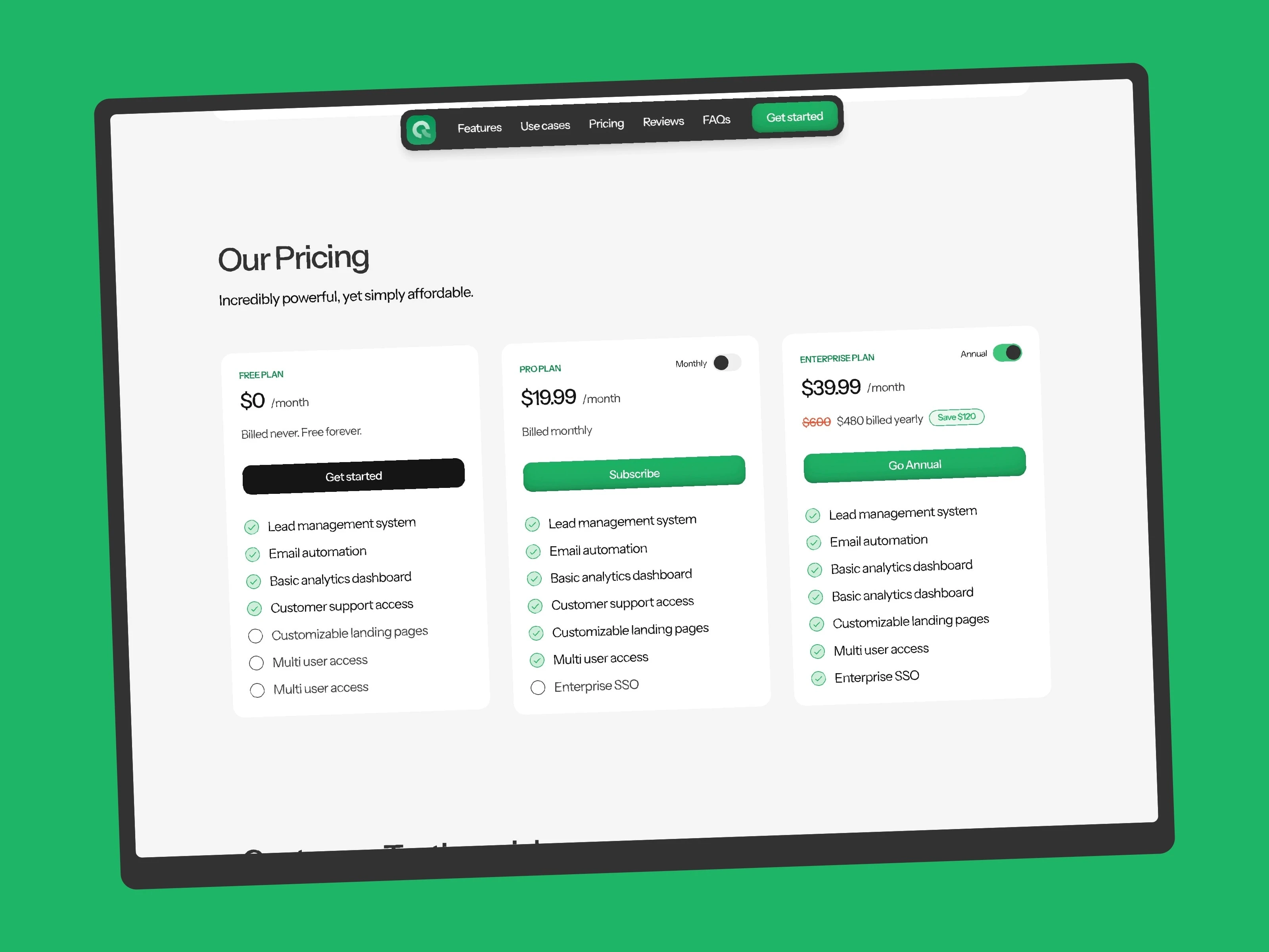 I packed Compound with interactions proven to increase engagement: a 3D pricing toggle with tactile hover effects (28% higher engagement), stacking feature cards with scroll-triggered animations, sliding use case galleries that boost demo requests, and a pre-built comparison table generator.