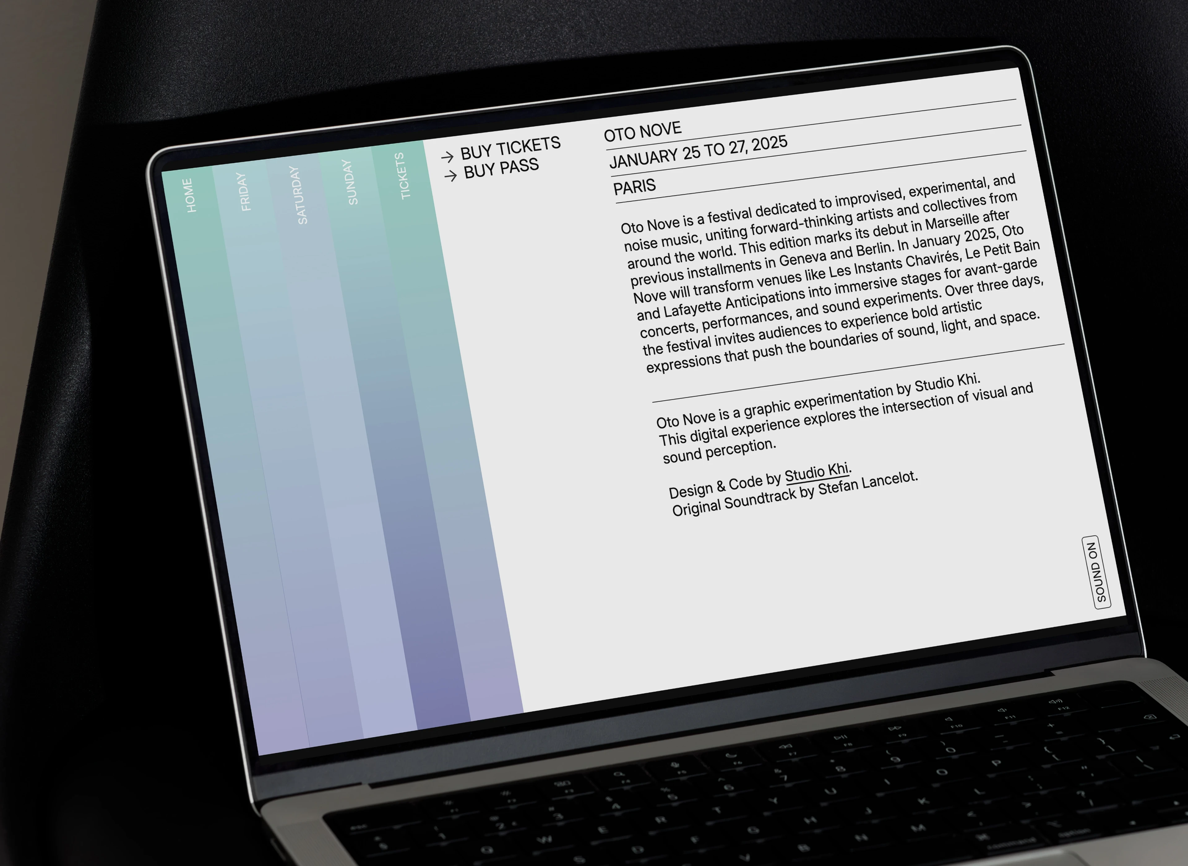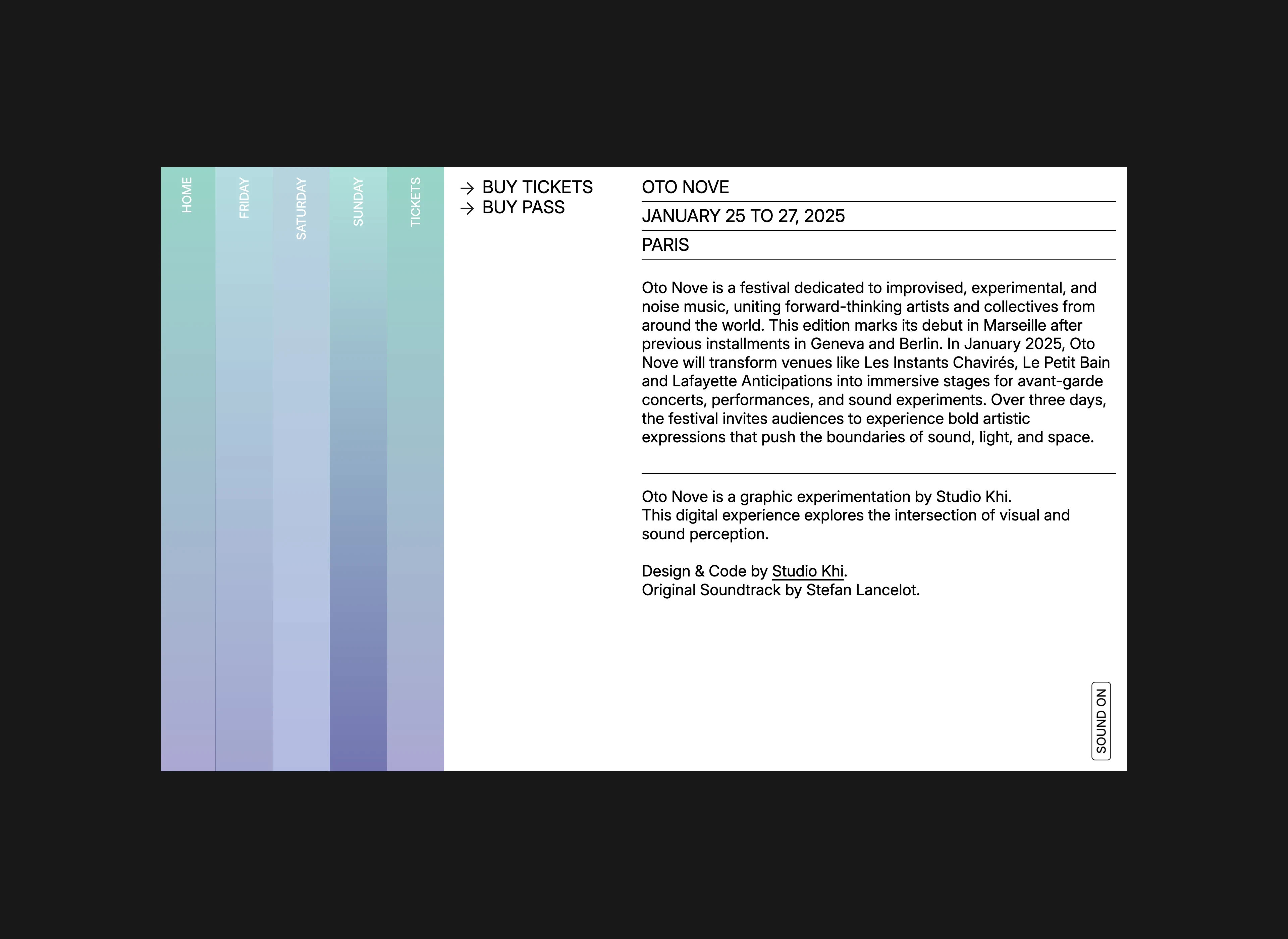 The Oto Nove Fest website offers a sensory experience that echoes the spirit of the festival, dedicated to experimental music.