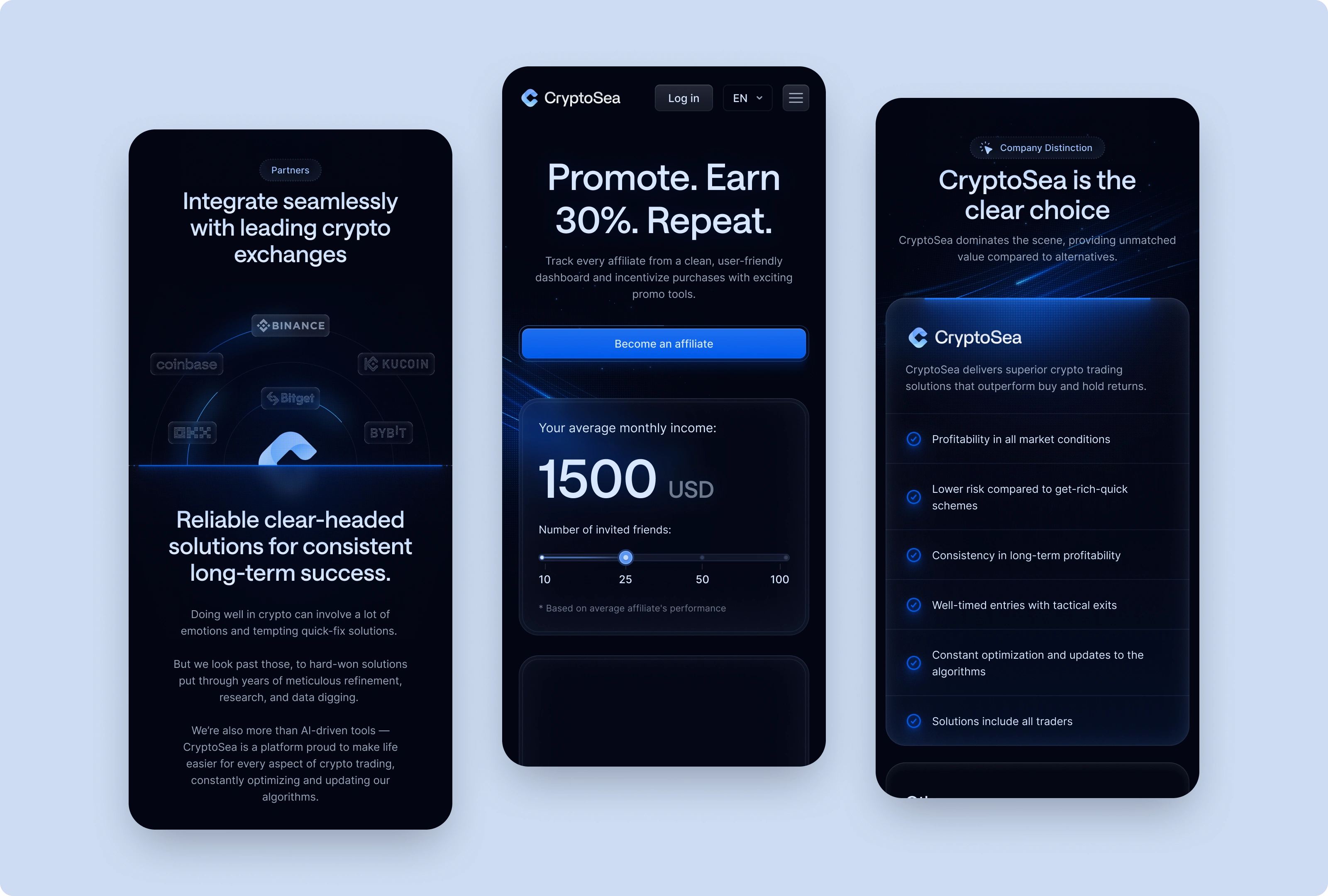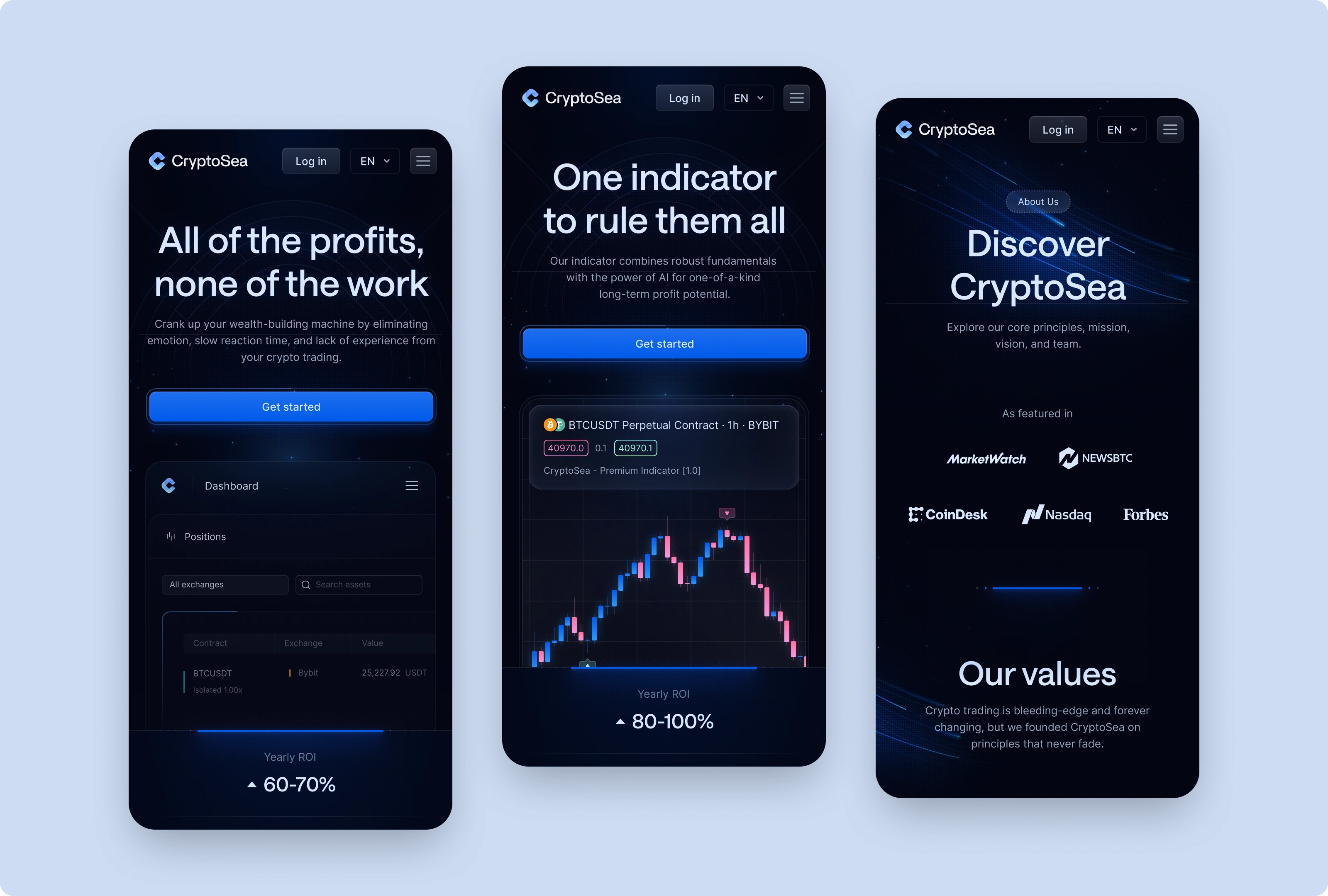 Developed a mobile-responsive crypto trading platform for CryptoSea.