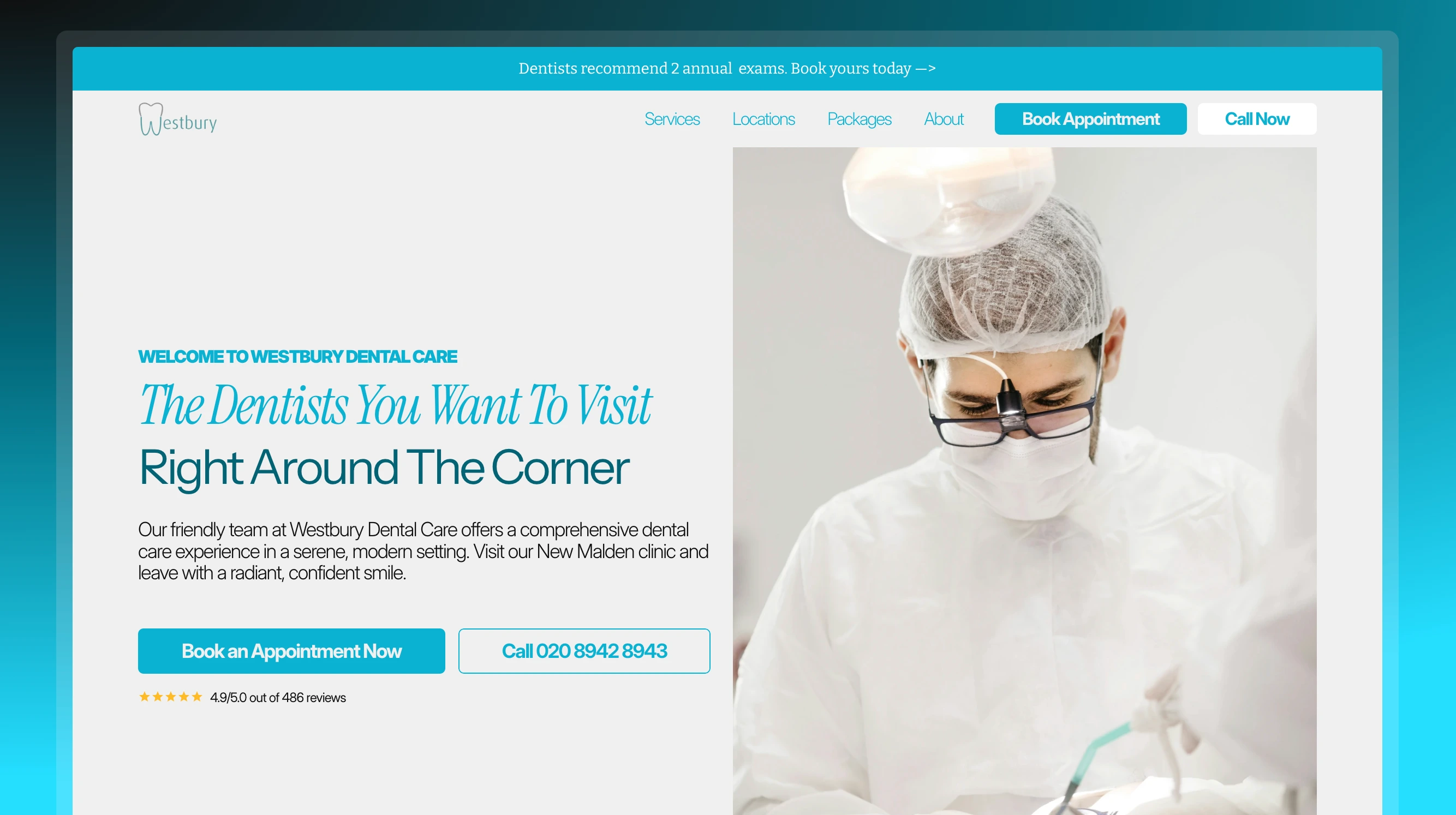 Framer spec redesign of existing website with new interactions and fresh visuals to match the modern aesthetic and playful vibe of the refurbished clinic.