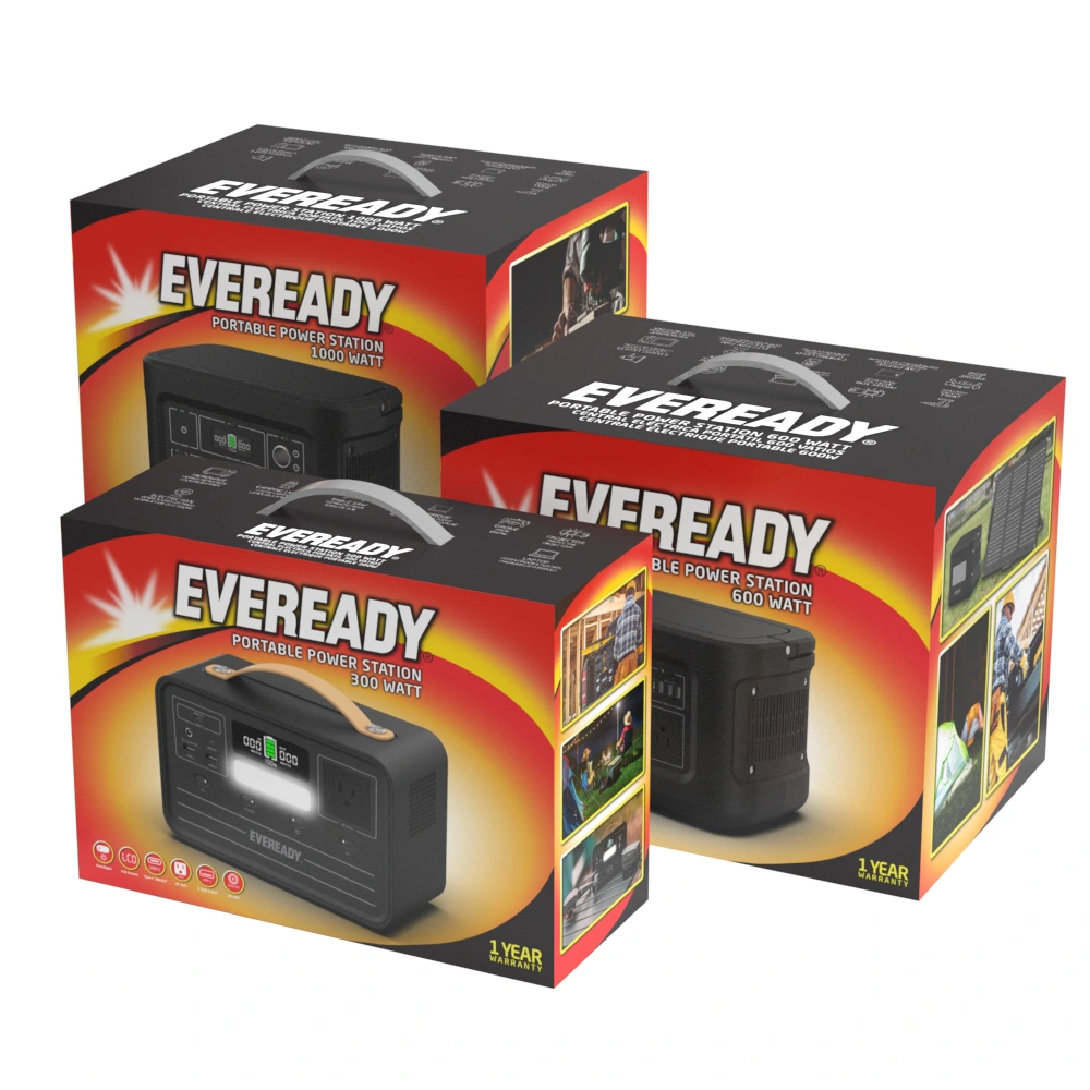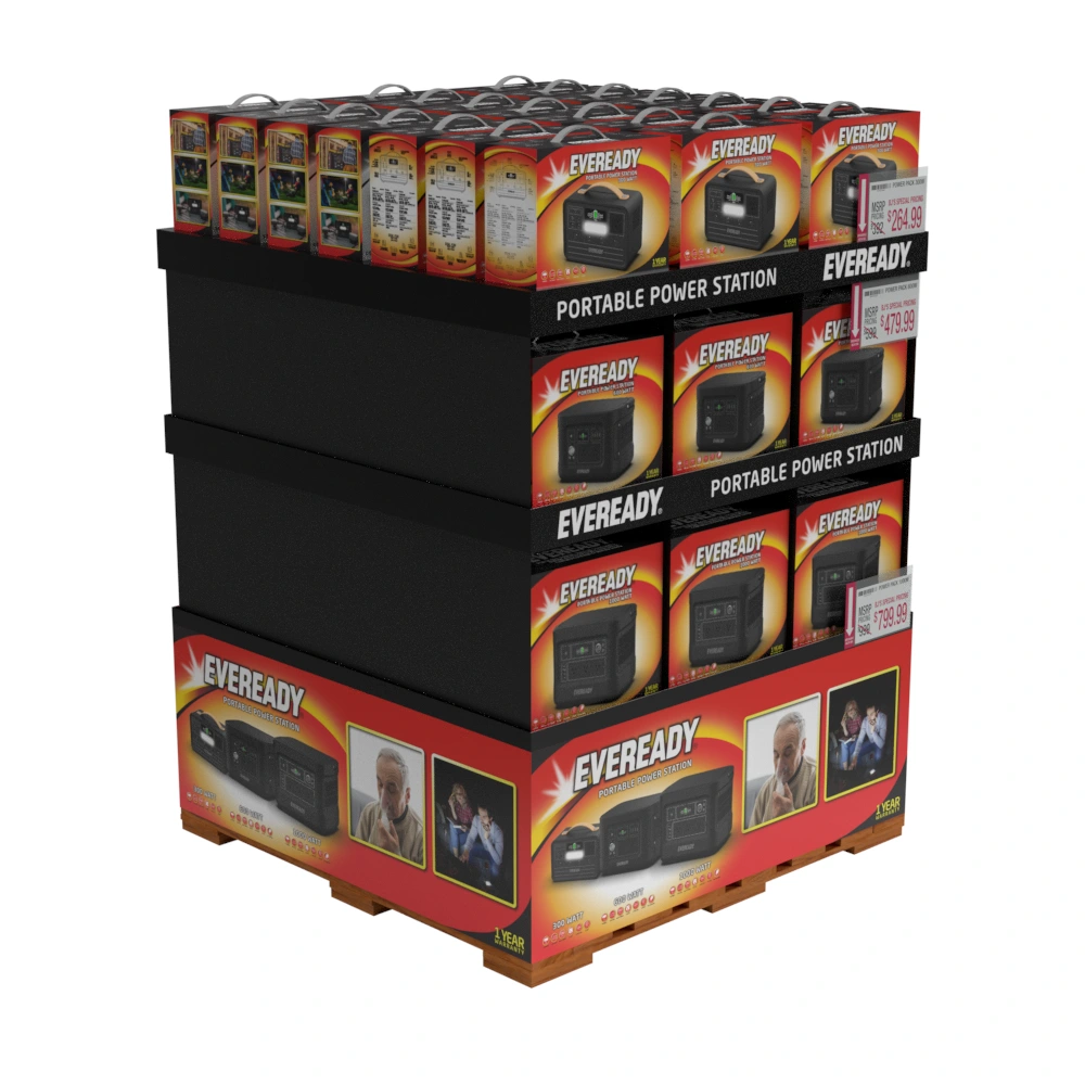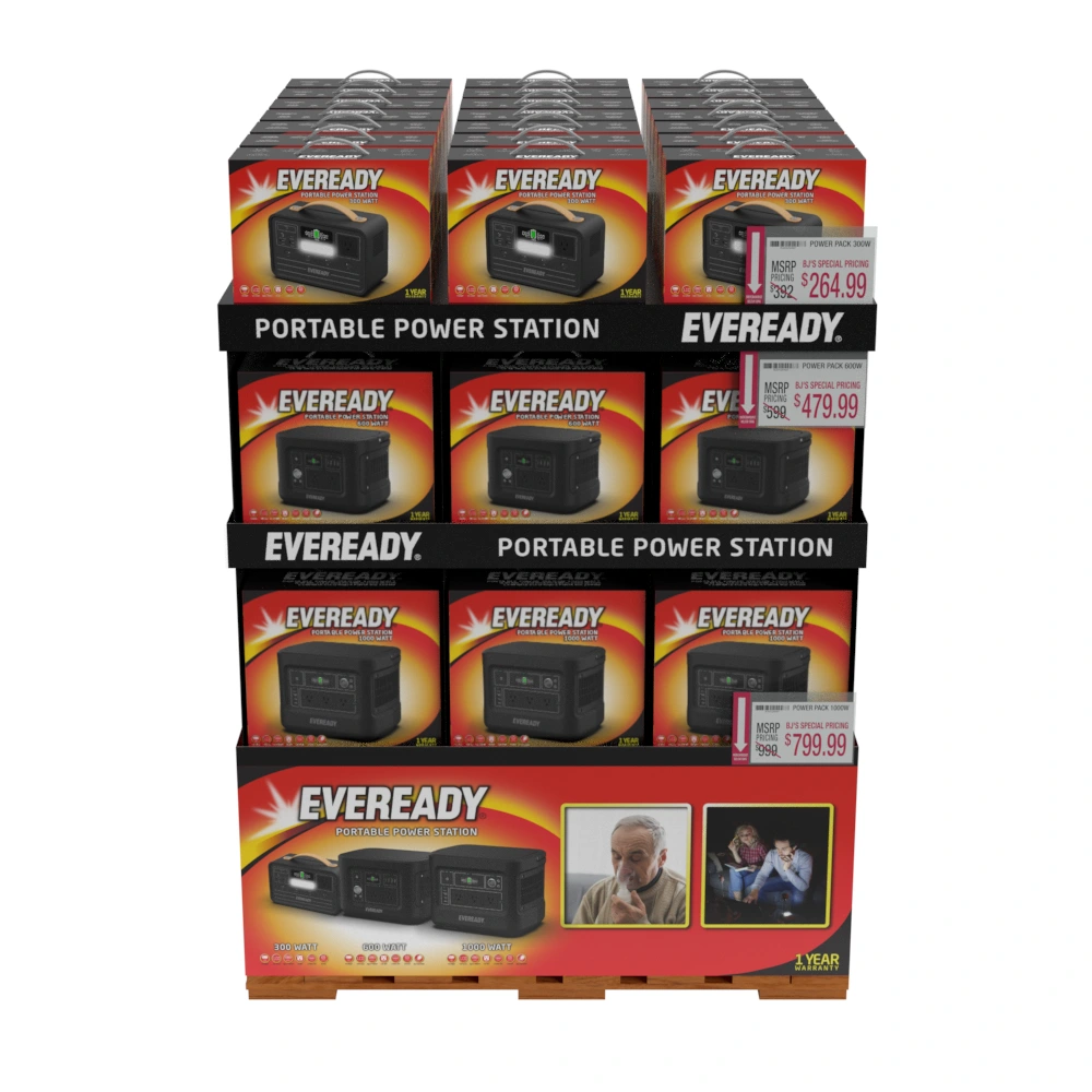 Designed packaging for Eveready portable power stations and BJ’s pallet displays.