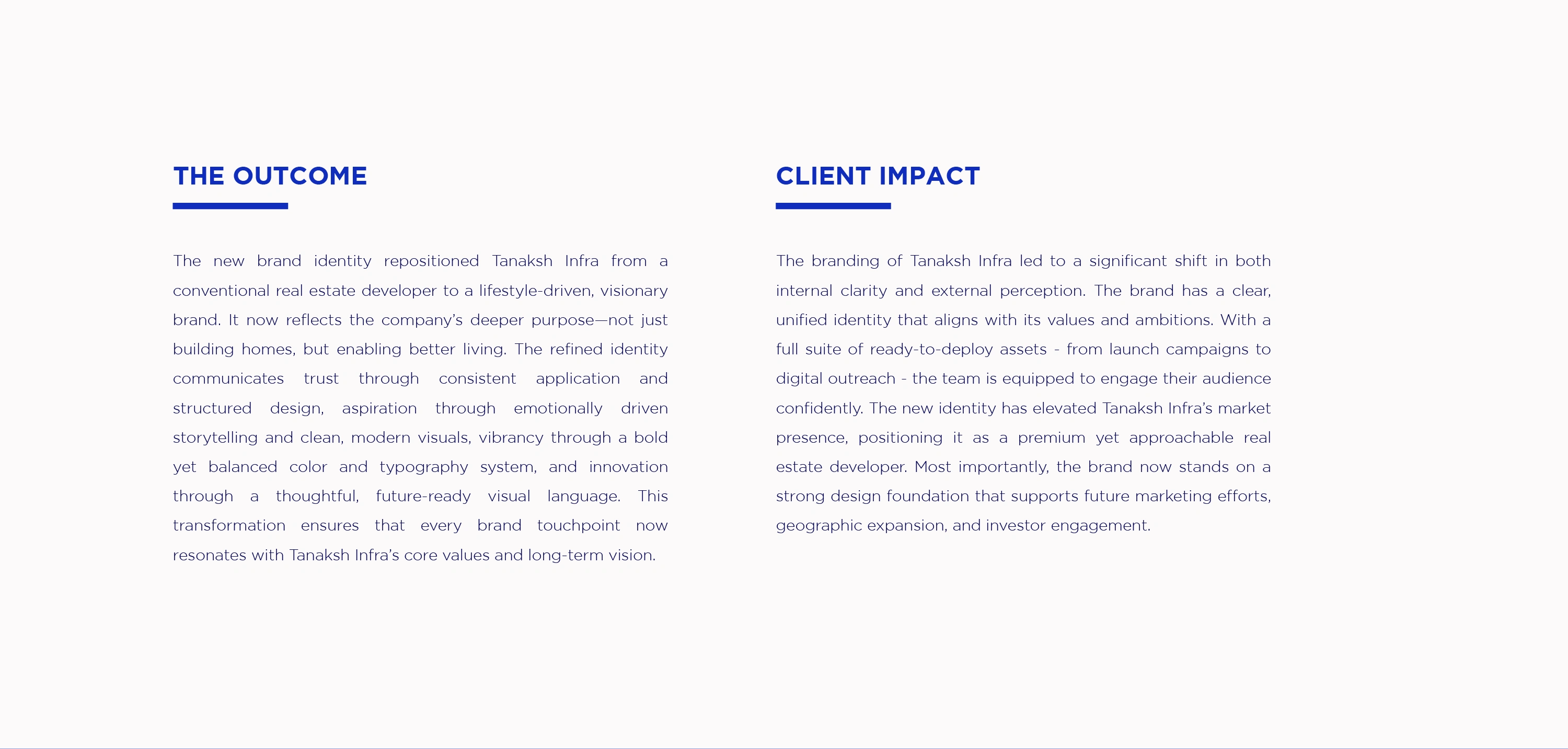 ✔ Complete Brand Transformation – Repositioned Tanaksh Infra from a conventional developer to a lifestyle-centric, premium brand.