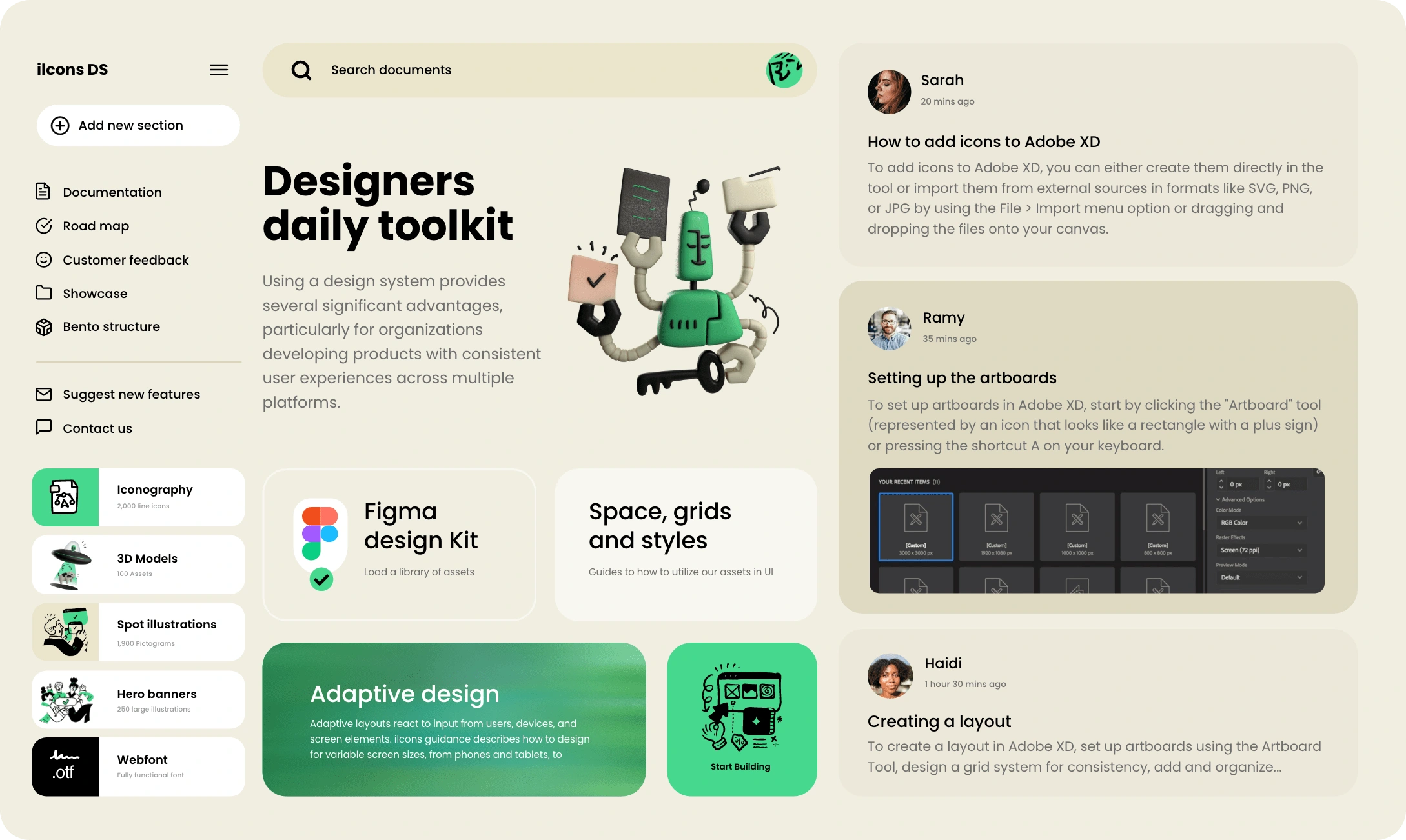 We even made an entire website for this beautiful design system where you can get all the illustrations, font and 10 thousand icons that compliment them!