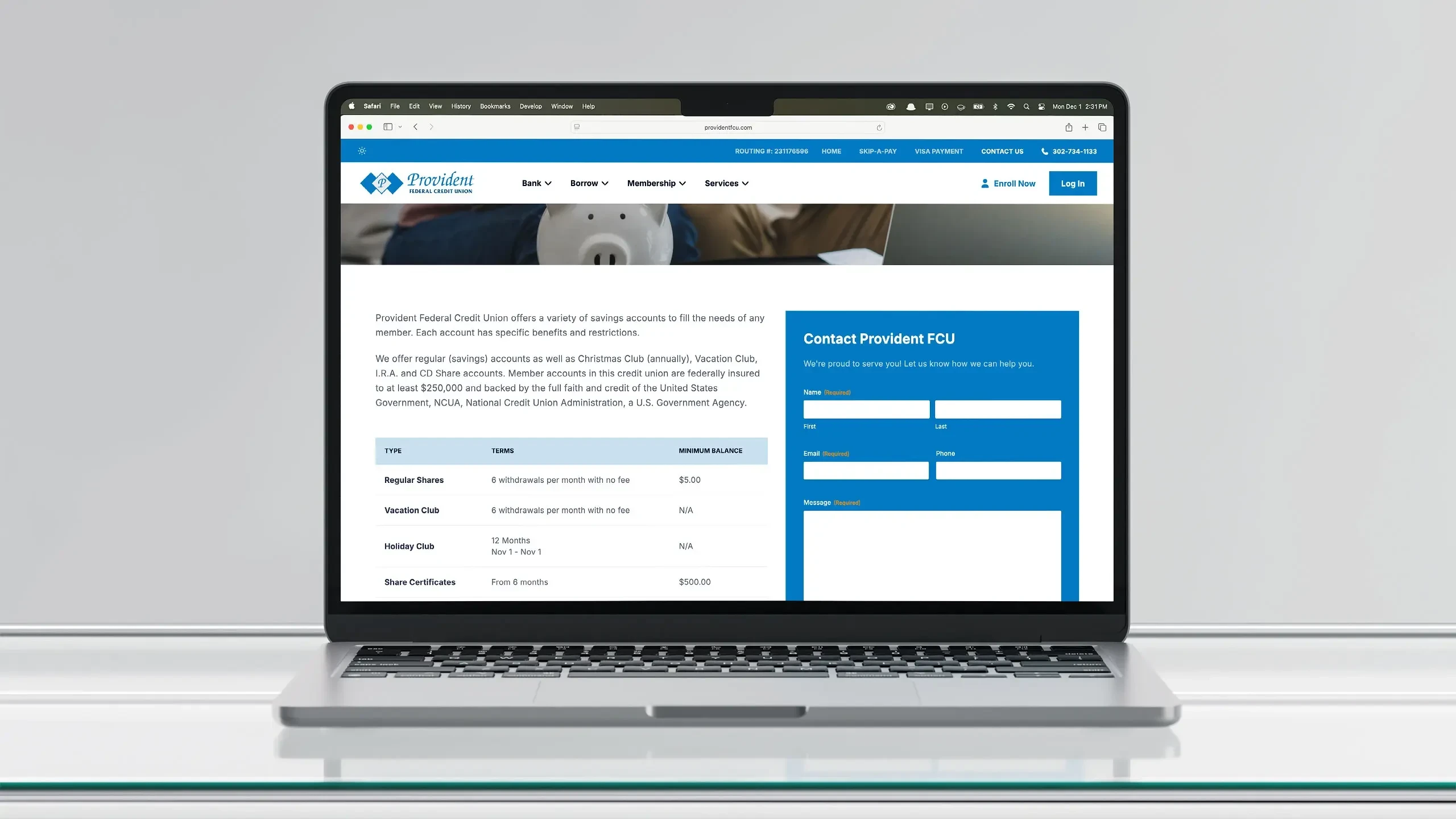 Secured & redesigned Provident Federal Credit Union: Custom WordPress, Tailwind CSS, WCAG 2.2 AA compliant + smart rates/promo/closings tools.