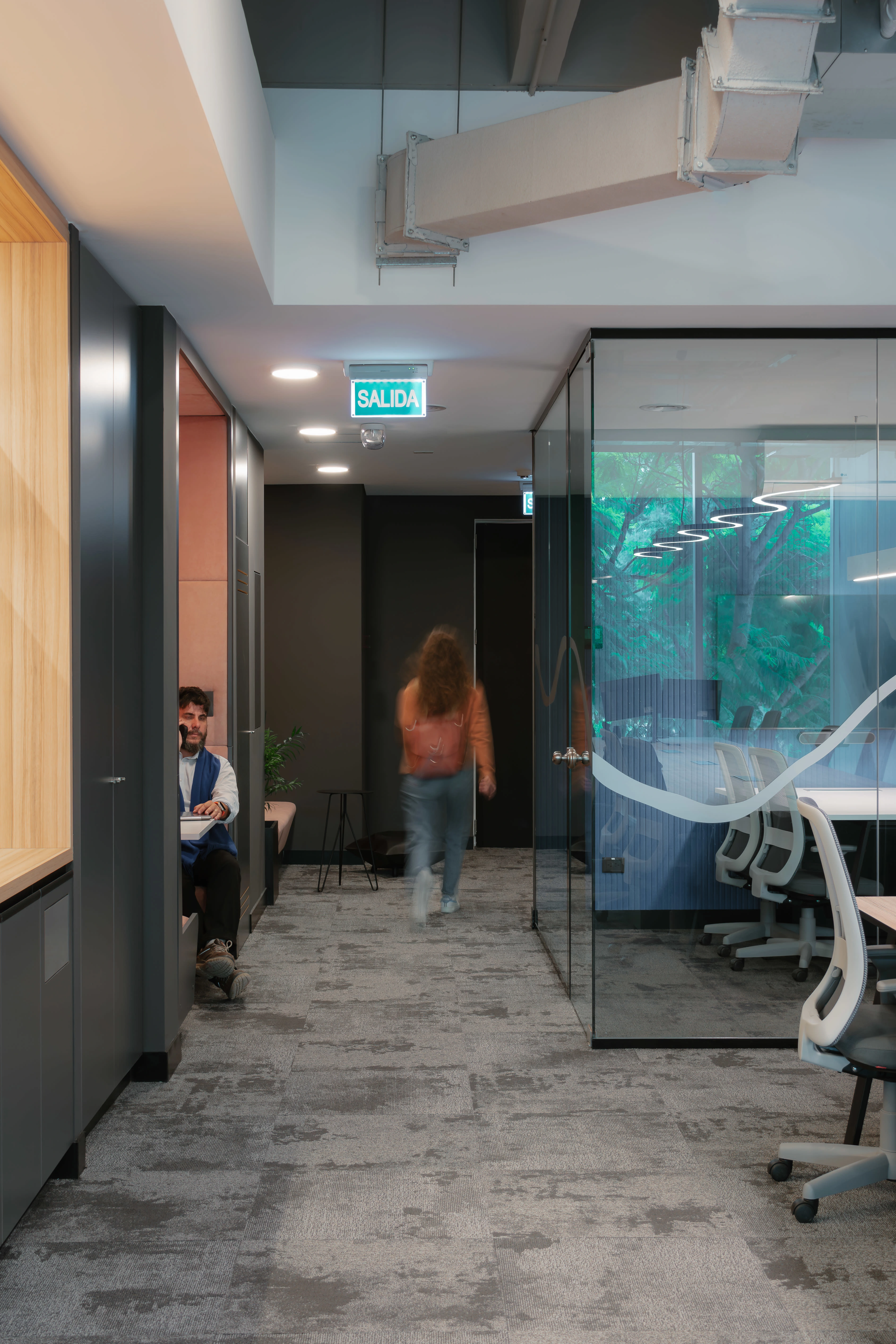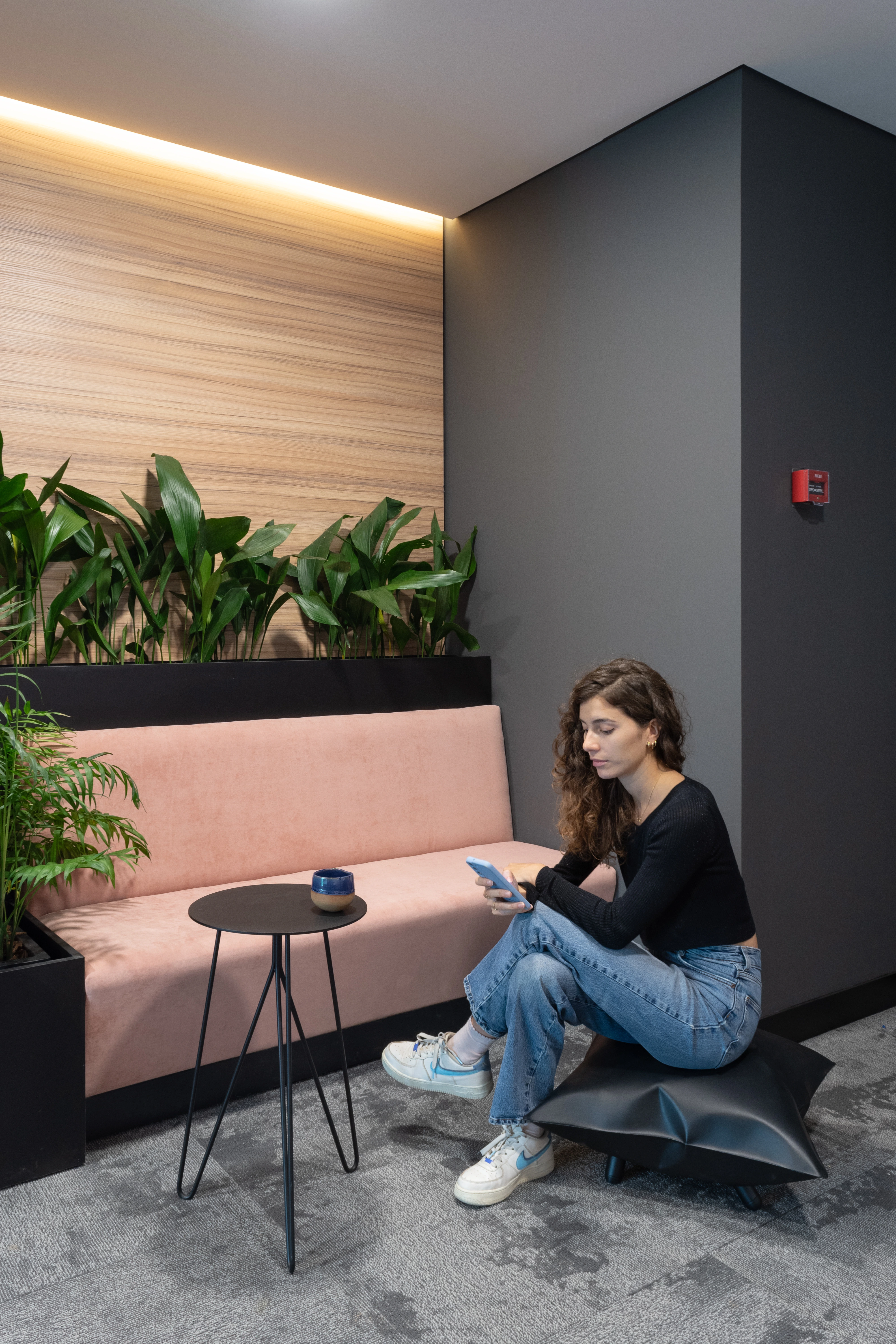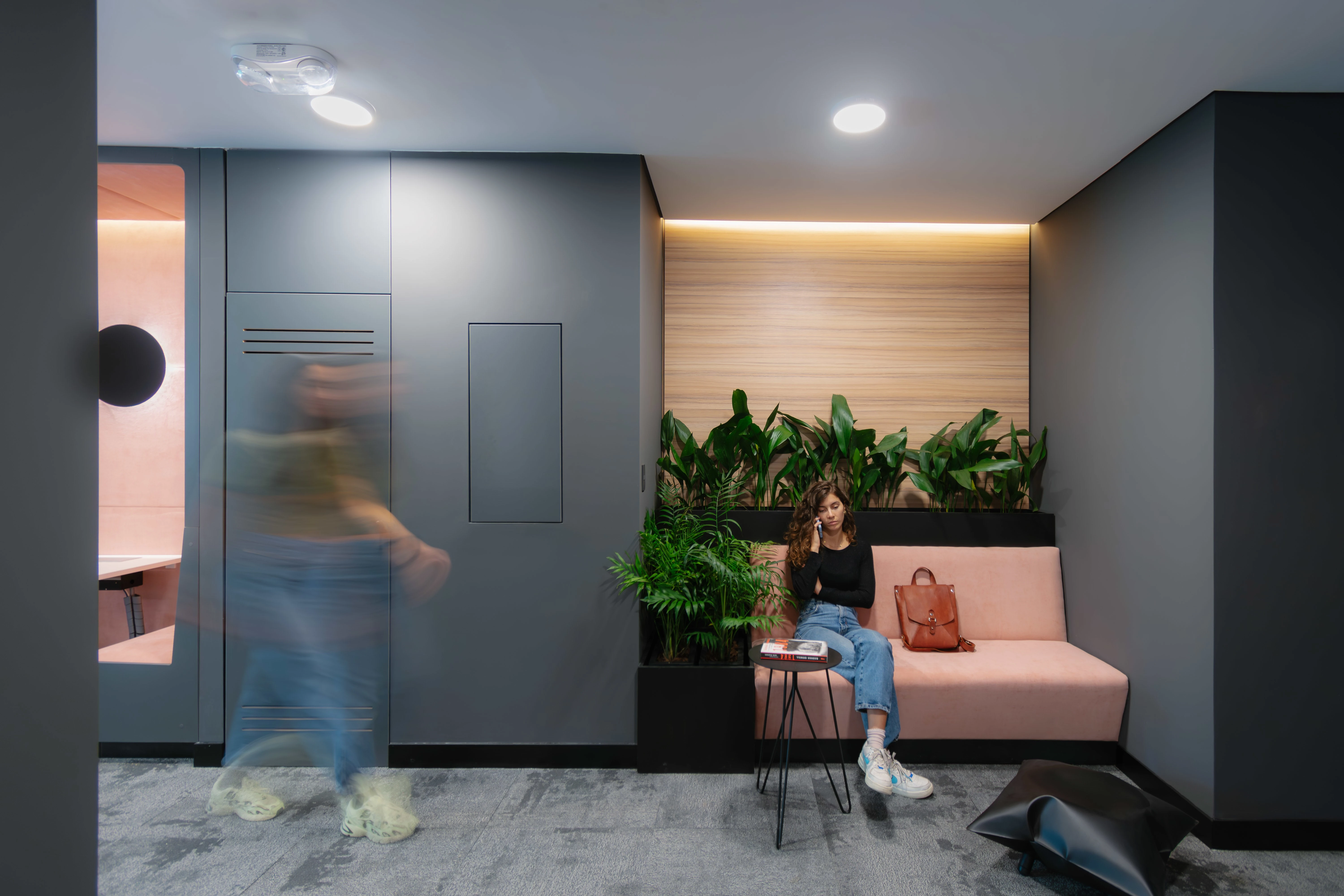 Design for the first offices of a startup dedicated to venture capital. As a young and forward-thinking company, the goal was to create an inspiring space that balances sophistication with a relaxed, warm, and modern atmosphere. The furniture was carefully selected to add a playful touch through its forms and colors, without compromising user comfort. The lighting fixtures also contribute personality and character to the space. The office stands out for its rich contrast of textures and styles, where curved shapes, soft materials, and cool metals come together to create a visually dynamic and engaging environment.