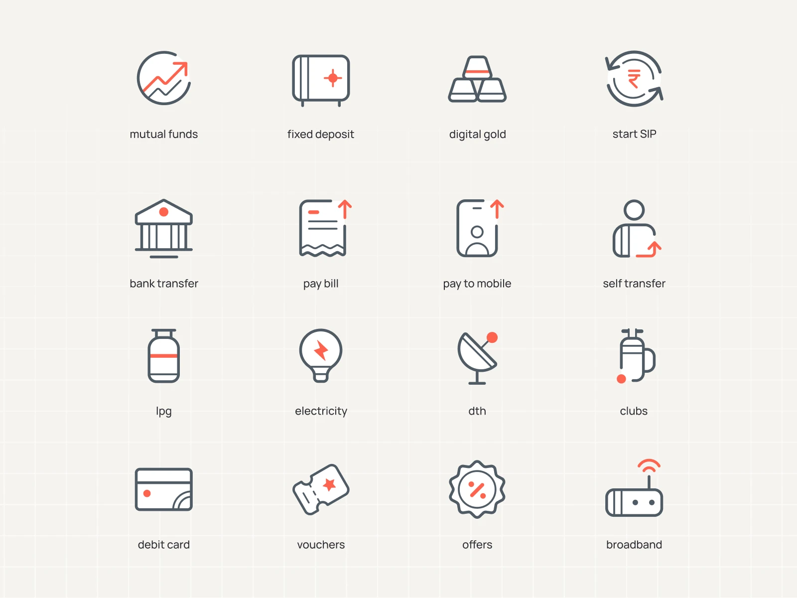 Jupiter is a financial wellness app which offers multiple banking solutions (savings account, credit card, money tracking, investments and loans). Last year, in 2024, they went through a rebrand, moving from space themed and friendly visual style to a bold, clear and minimal visual style. These are the new icons I had designed for their app.