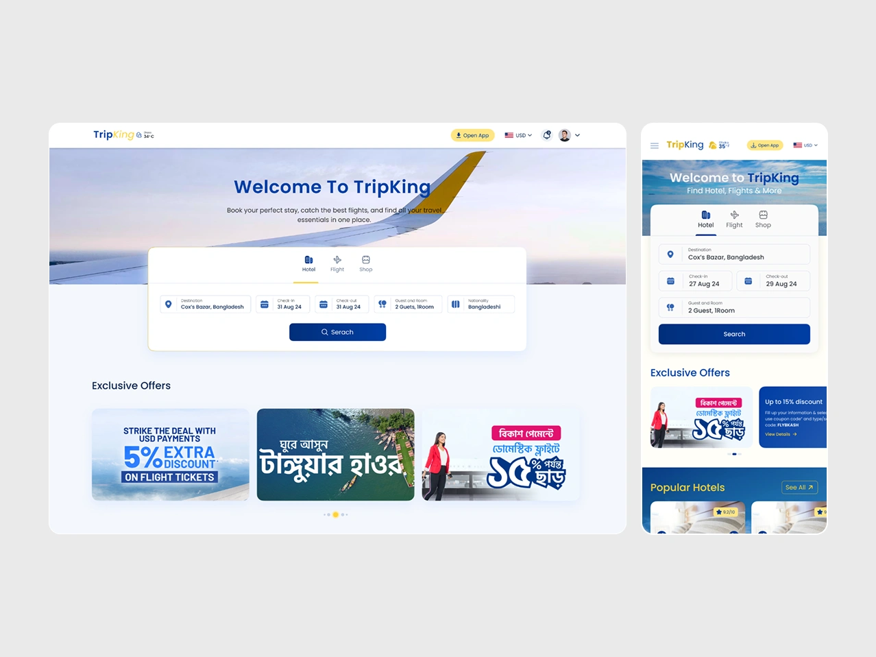 TripKing is an all-in-one travel booking platform that brings hotel reservations, flight booking, and a fully integrated.
