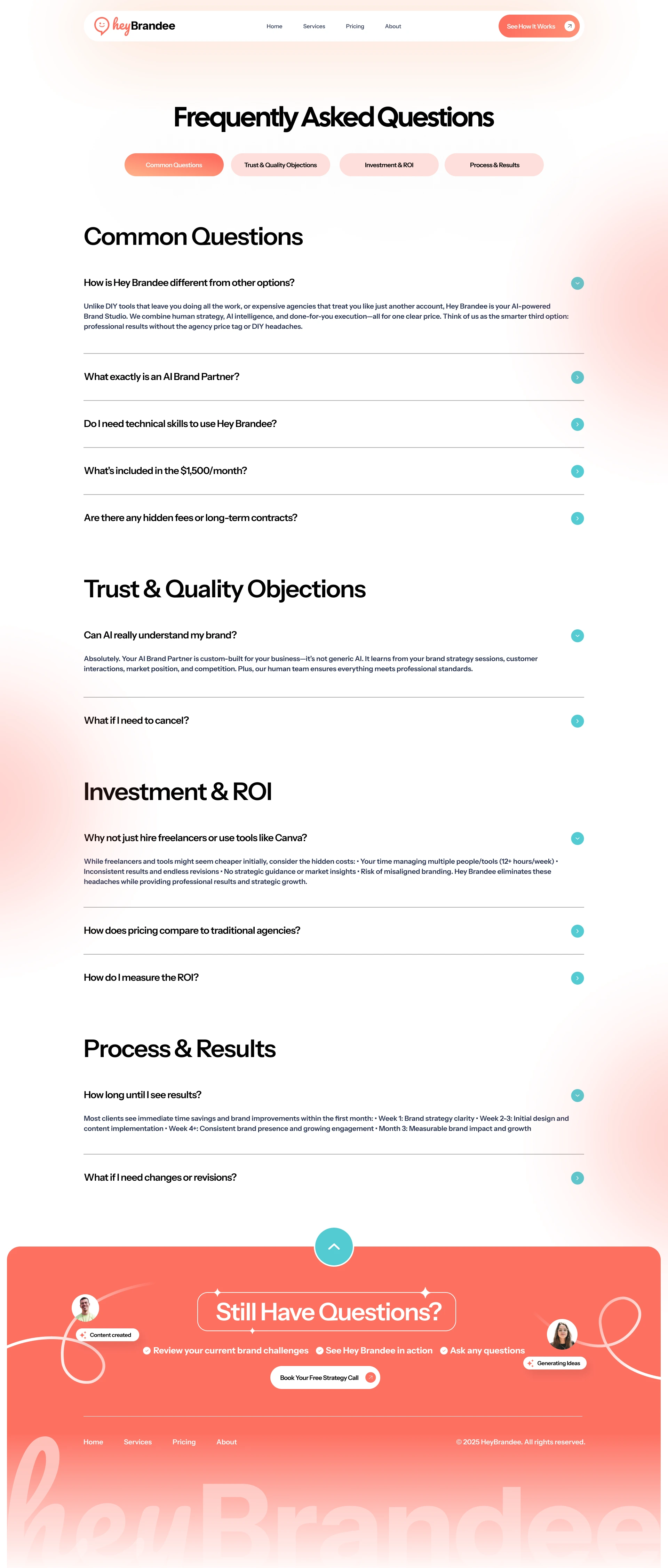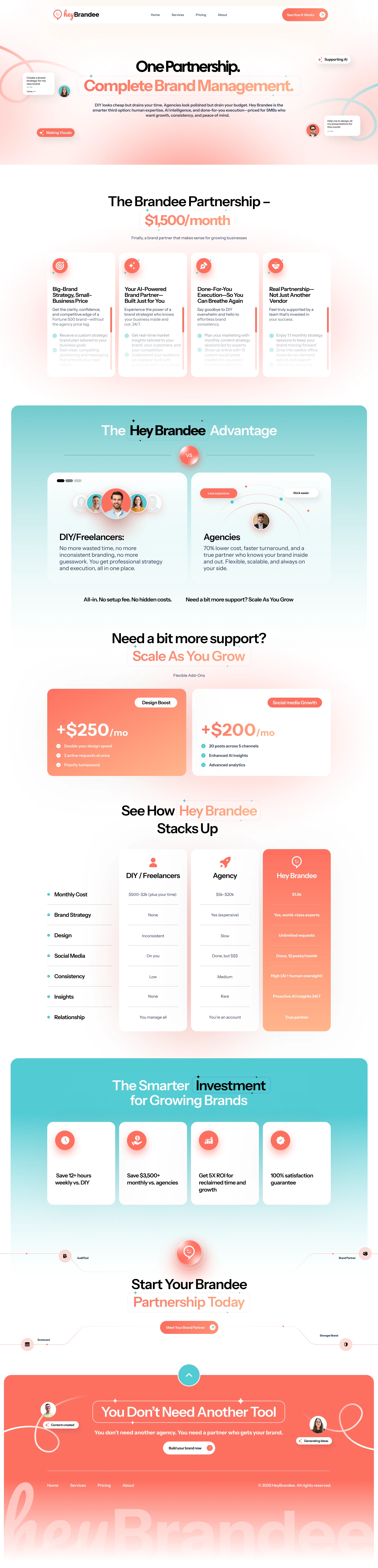 The brand needed a modern, trustworthy design system that made the offer crystal clear and positioned HeyBrandee as the future of branding.