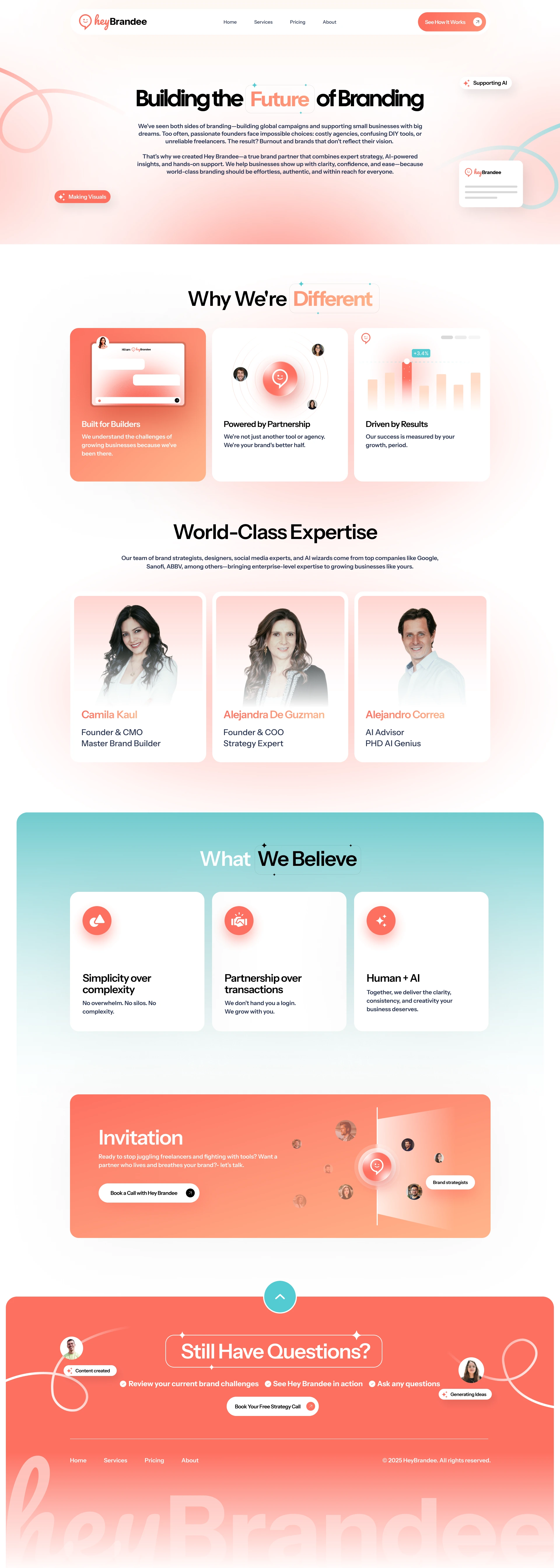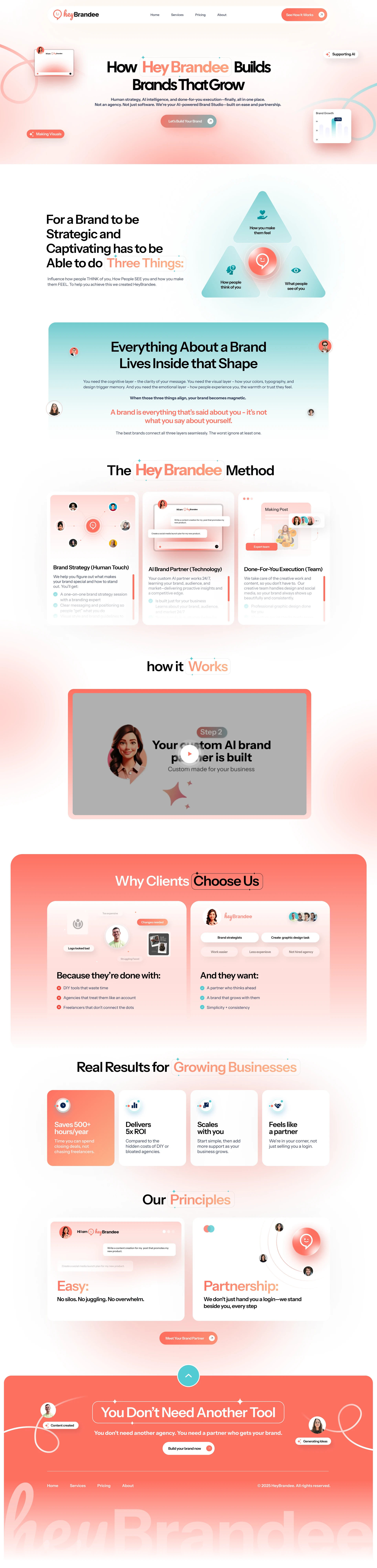 This project transformed HeyBrandee from a brand concept into a fully realized digital experience—strategic, warm, and ready to scale.