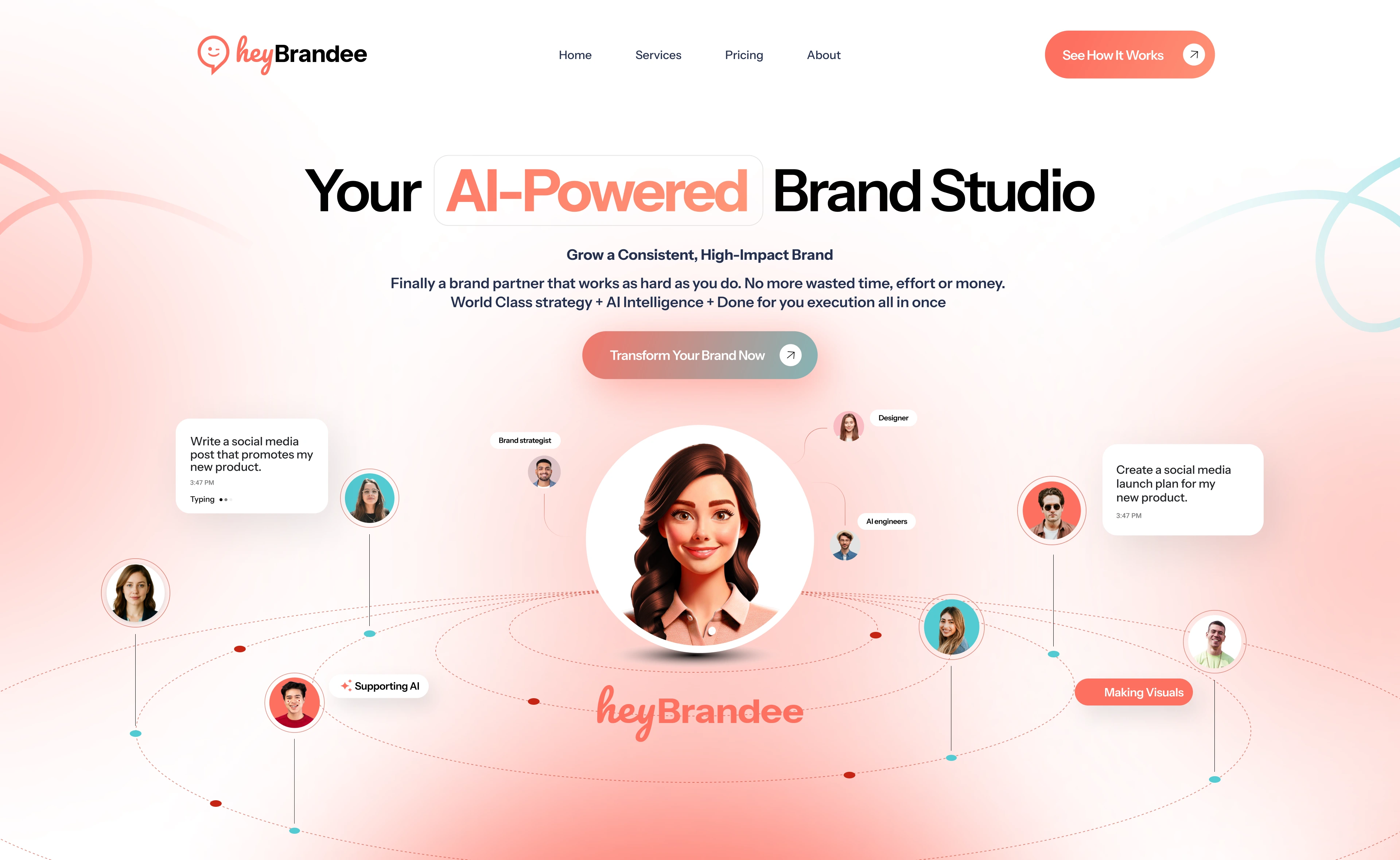 HeyBrandee is an AI-powered brand studio built for small and medium-sized businesses who need consistent branding, ongoing content, and month-to-month partnership—without the traditional agency price tag.